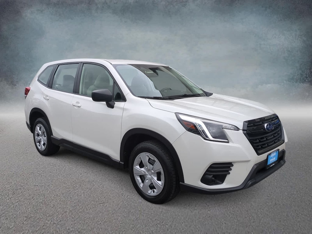 Clean CARFAX. Certified. Crystal White Pearl 2022 Subaru Forester AWD Lineartronic CVT 2.5L 4-Cylinder DOHC 16V Subaru Certified Pre-Owned Certified, 3.70 Axle Ratio, 4 Speakers, 4-Wheel Disc Brakes, ABS brakes, Air Conditioning, AM/FM radio: SiriusXM, Anti-whiplash front head restraints, Auto High-beam Headlights, Automatic temperature control, Brake assist, Bumpers: body-color, CD player, Cloth Upholstery, Driver door bin, Driver vanity mirror, Dual front impact airbags, Dual front side impact airbags, Electronic Stability Control, Exterior Parking Camera Rear, Four wheel independent suspension, Front anti-roll bar, Front Bucket Seats, Front Center Armrest, Front reading lights, Fully automatic headlights, Illuminated entry, Knee airbag, Low tire pressure warning, Occupant sensing airbag, Outside temperature display, Overhead airbag, Overhead console, Panic alarm, Passenger door bin, Passenger vanity mirror, Power door mirrors, Power steering, Power windows, Radio data system, Radio: Subaru Starlink 6.5 Multimedia Plus System, Rear anti-roll bar, Rear window defroster, Rear window wiper, Remote keyless entry, Security system, Speed control, Speed-sensing steering, Split folding rear seat, Standard Model, STARLINK/Apple CarPlay/Android Auto, Steering wheel mounted audio controls, Tachometer, Telescoping steering wheel, Tilt steering wheel, Traction control, Trip computer, Variably intermittent wipers, Wheels: 17 x 7.0J Steel w/Silver Full Wheel Cover.