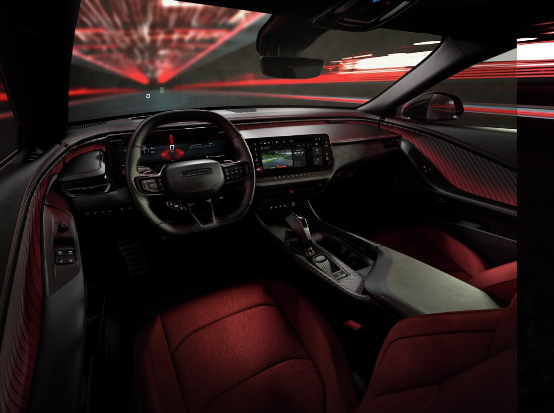 The 2025 Charger Daytona has two trim levels: R/T and Scat Pack. The base R/T includes a 456-horsepower electric powertrain, a 12.3-inch touchscreen, a 10.25-inch digital gauge cluster, dual-zone automatic climate control, and a robust suite of safety features. The Scat Pack gets a 630-horsepower setup, sport suspension tuning, additional driving modes (Drag/Track, Launch Control, and Drift/Donut), a 16-inch digital gauge cluster, and a head-up display.