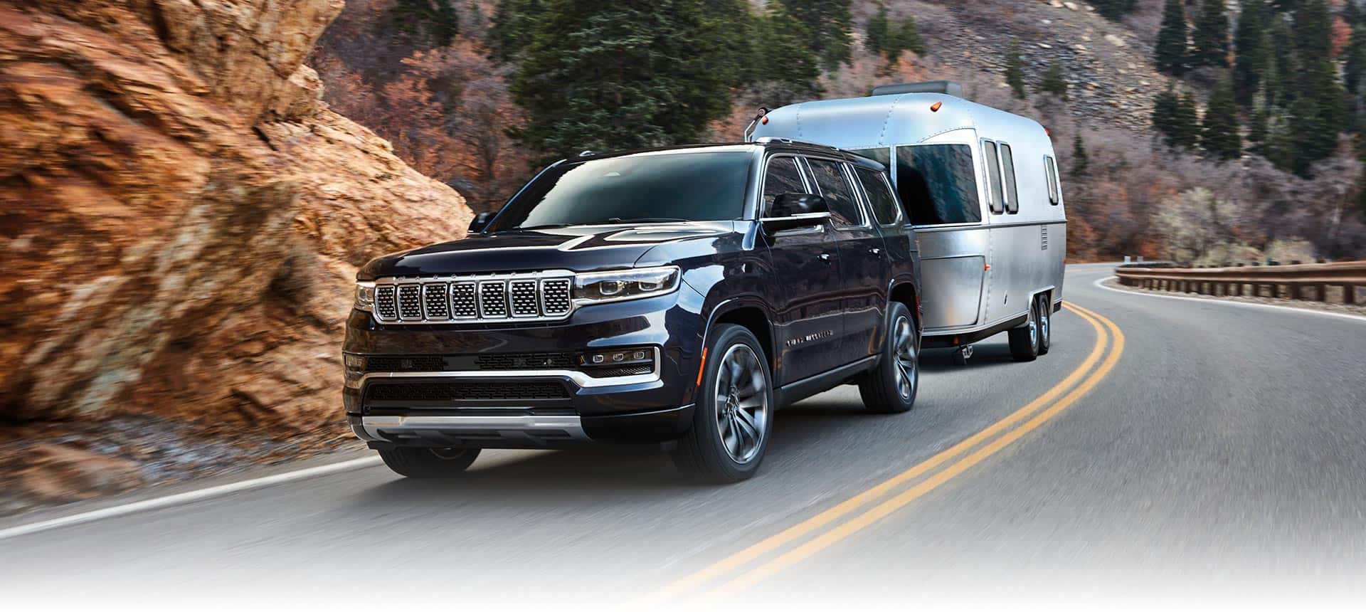 Under the hood, the Grand Wagoneer packs a punch with a standard Hurricane Twin-Turbo 510 engine that produces up to 510 horsepower and 500 pound-feet of torque when using premium unleaded fuel. Delivering impressive torque at low engine speeds, the Hurricane Twin-Turbo 510 allows the Grand Wagoneer to sprint from 0 to 60 mph in around 5.9 seconds. In addition, drivers receive up to 9,800 pounds of maximum towing capacity to help them haul camper, boat, or utility trailers down I-90.