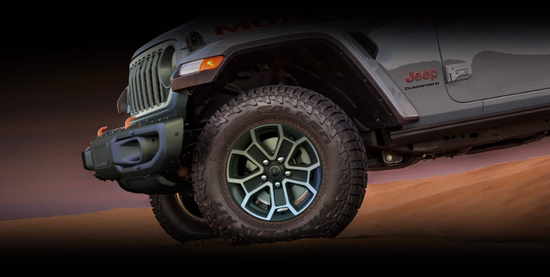 The Rubicon trim level takes things to the next level with a 4.10 rear axle ratio, 33-inch all-terrain tires, increased ground clearance, and an electronically disconnecting front stabilizer bar, among other features. This trim level allows you to go anywhere with tow hooks, a two-speed transfer case, and Fox shock absorbers. If you plan on hitting the desert, the Mojave trim is desert-rated, with a Fox internal bypass shock absorber system with hydraulic jounce bumpers, a lifted front-end suspension, and more.