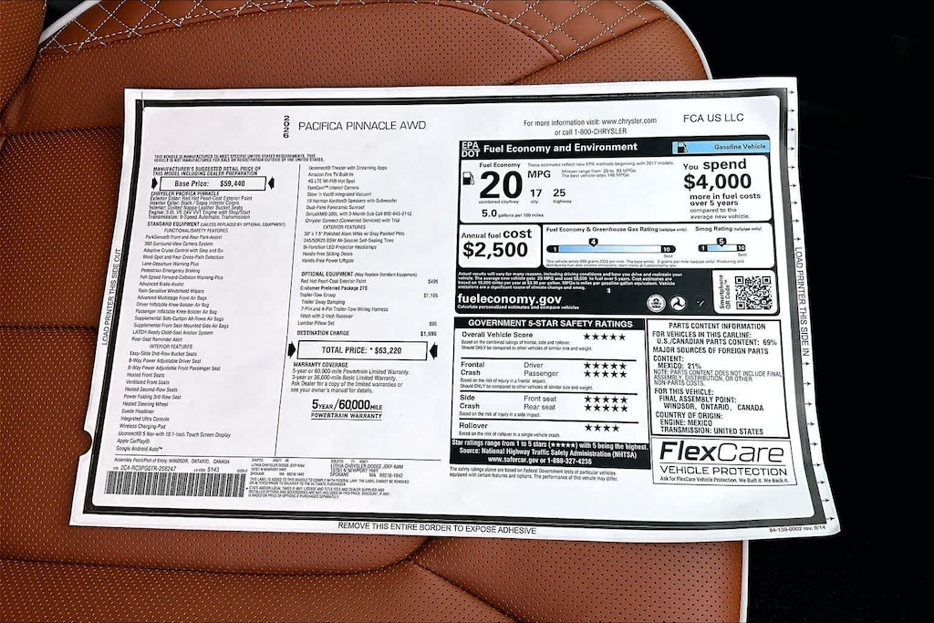 TRAILER TOW GROUP Hitch w/2 Receiver, Trailer Sway Damping, 7 & 4 Pin Trailer Tow Wiring Harness, TRANSMISSION: 9-SPEED 948TE AUTOMATIC (STD), ENGINE: 3.6L V6 24V VVT UPG I W/ESS (STD). Chrysler Pinnacle with Red Hot Pearlcoat exterior and Sepia/Black interior features a V6 Cylinder Engine with 287 HP at 6400 RPM*.