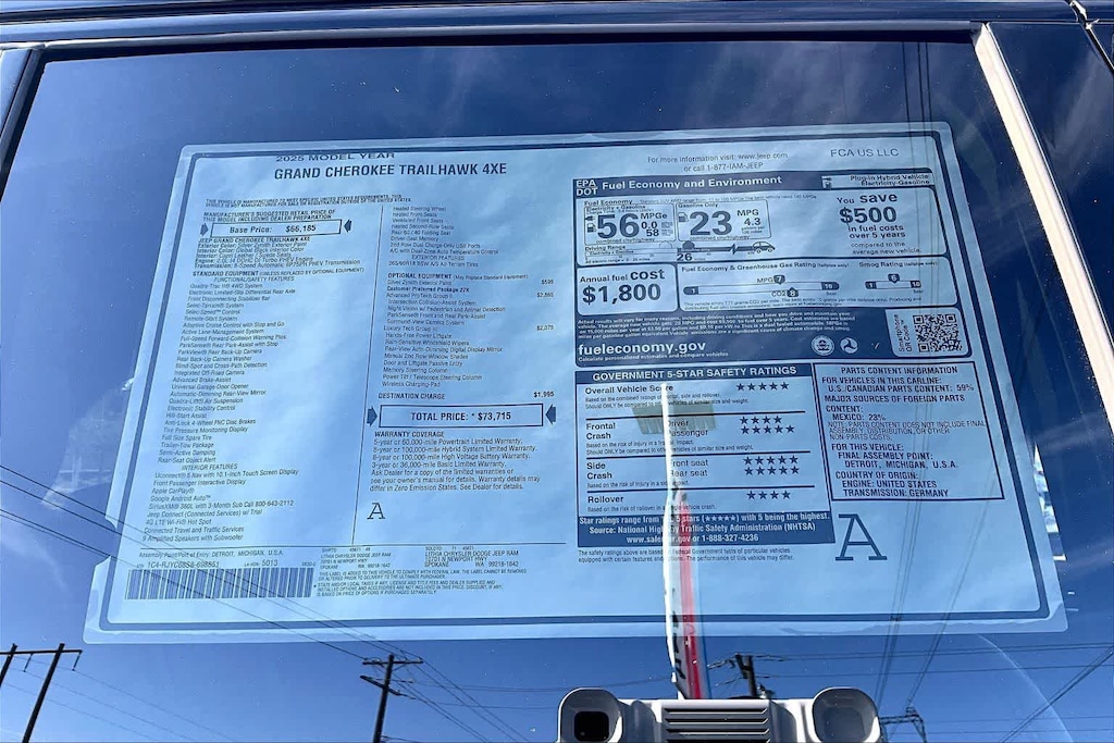 ADVANCED PROTECH GROUP II Intersection Collision Assist System, Surround View Camera System, ParkSense Front/Rear Park Assist w/Stop, Night Vision/Pedestrian-Animal Detection, LUXURY TECH GROUP III Hands-Free Power Liftgate, Power Tilt/Telescope Steering Column, 2nd-Row Manual Window Shades, Rain Sensitive Windshield Wipers, Passive Entry - Front/Rear Doors, Liftgate, Wireless Charging Pad, Rearview Autodim Digital Display Mirror, Memory Steering Column, TRANSMISSION: 8-SPEED AUTOMATIC 8P75PH PHEV (STD), ENGINE: 2.0L I4 DOHC DI TURBO PHEV (STD). Jeep Trailhawk with Silver Zynith exterior and Global Black interior features a 4 Cylinder Engine with 375 HP at 5250 RPM*.