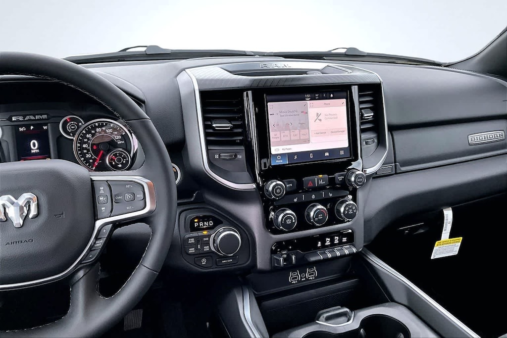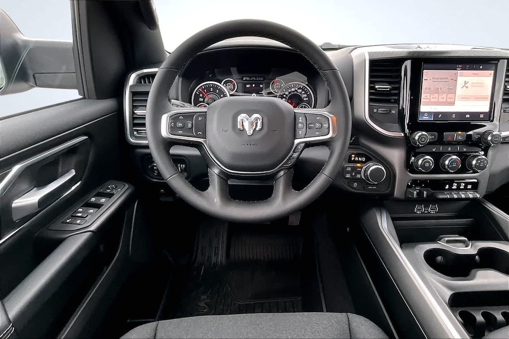 ENGINE: 5.7L V8 HEMI MDS VVT ETORQUE Active Noise Control System, Heavy Duty Engine Cooling, Passive Tuned Mass Damper, GVWR: 7,100 lbs, Dual Rear Exhaust w/Bright Tips, G/T Exhaust, 18 Aluminum Spare Wheel, BIG HORN LEVEL 1 EQUIPMENT GROUP SiriusXM Radio Service, Rear Window Defroster, Rear View Auto Dim Mirror, Power Adjustable Pedals, Leather Wrapped Steering Wheel, Rear Power Sliding Window, Rear Dome w/On/Off Switch Lamp, Glove Box Lamp, Auto Power-Folding Mirrors, Auto Dim Exterior Driver Mirror, Heated Front Seats, Heated Steering Wheel, Black Premium Power Mirrors, SiriusXM Satellite Radio, 400W Inverter, Exterior Mirrors w/Supplemental Signals, Steering Wheel Mounted Audio Controls, Exterior Mirrors Courtesy Lamps, Body Color Fender Flares, 115V Auxiliary Power Outlet, Universal Garage Door Opener, 2nd Row In Floor Storage Bins, Sun Visors w/Illuminated Vanity Mirrors, MOPAR FRONT & REAR RUBBER FLOOR MATS, TRANSMISSION: 8-SPEED AUTOMATIC (8HP75), E-LOCKER REAR AXLE. Ram Big Horn with Bright White Clearcoat exterior and Black interior features a 8 Cylinder Engine with 395 HP at 5600 RPM*.