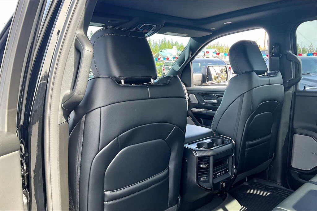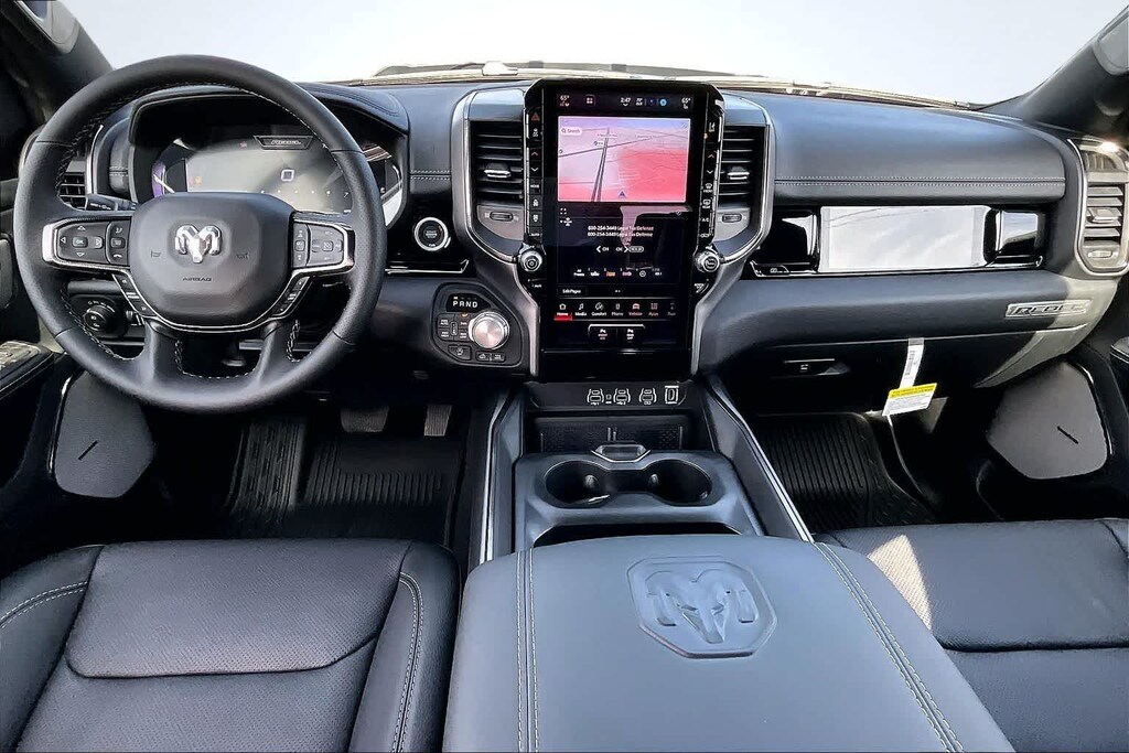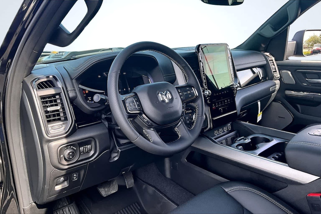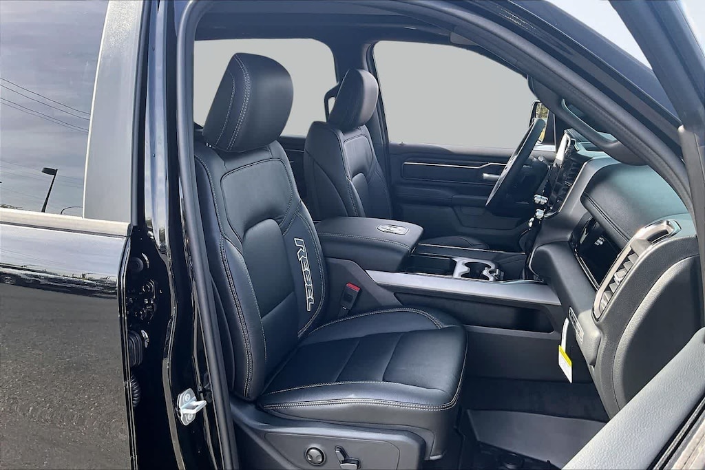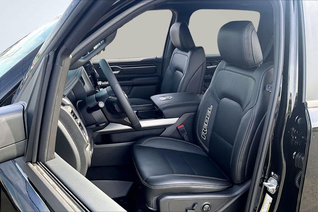 REBEL LEVEL 2 EQUIPMENT GROUP Power Adjustable Pedals w/Memory, Front Passenger Interactive Display, Power 2-Way Passenger Lumbar Adjust, Auto Power-Folding Mirrors, 115V Auxiliary Rear Power Outlet, Media Hub w/2 Charge Only USBs, Proximity Approach/Departure Lamps, Power Adjust 8-Way Front Passenger Seat, Security Alarm, Dual Wireless Charging Pad, harman/kardon® 19 Speaker Premium Sound, Rear Window Defroster, Rain Sensitive Windshield Wipers, Auto Dim Exterior Driver Mirror, Accent Color Door Handles, Heated Second Row Seats, Black Painted Exterior Mirrors Caps, Exterior Mirrors Approach Lamps, Smartphone As A Key Capable, 14.4 Touchscreen Display, Accent Color Premium Power Mirrors, Exterior Mirrors w/Supplemental Signals, Exterior Mirrors Courtesy Lamps, Radio: Uconnect 5 Nav w/14.4, DUAL-PANE PANORAMIC SUNROOF Dome Dual LED Reading Lamp, BLACK, LUX LEATHER TRIMMED BUCKET SEATS Power 2-Way Passenger Lumbar Adjust, Ventilated Front Seats, Power Adjust 8-Way Front Passenger Seat, TRANSMISSION: 8-SPEED AUTOMATIC (8HP75) (STD), ENGINE: 3.0L I6 HURRICANE SO TWIN TURBO ESS (STD). Ram Rebel with Diamond Black Crystal Pearlcoat exterior and Black interior features a Straight 6 Cylinder Engine with 420 HP at 5200 RPM*.