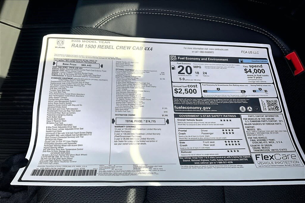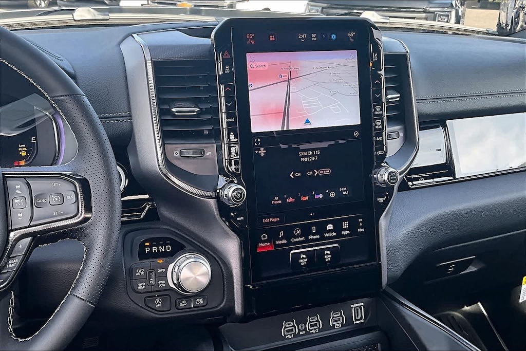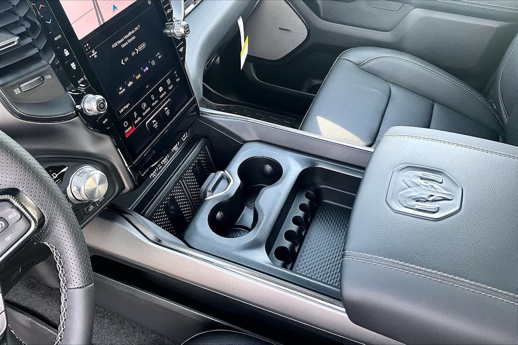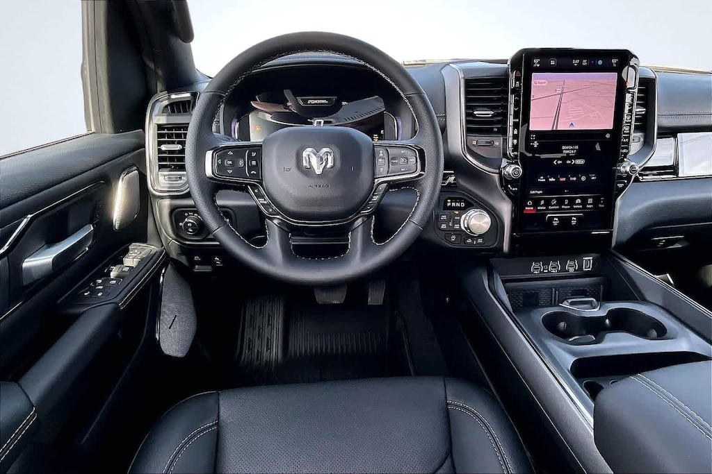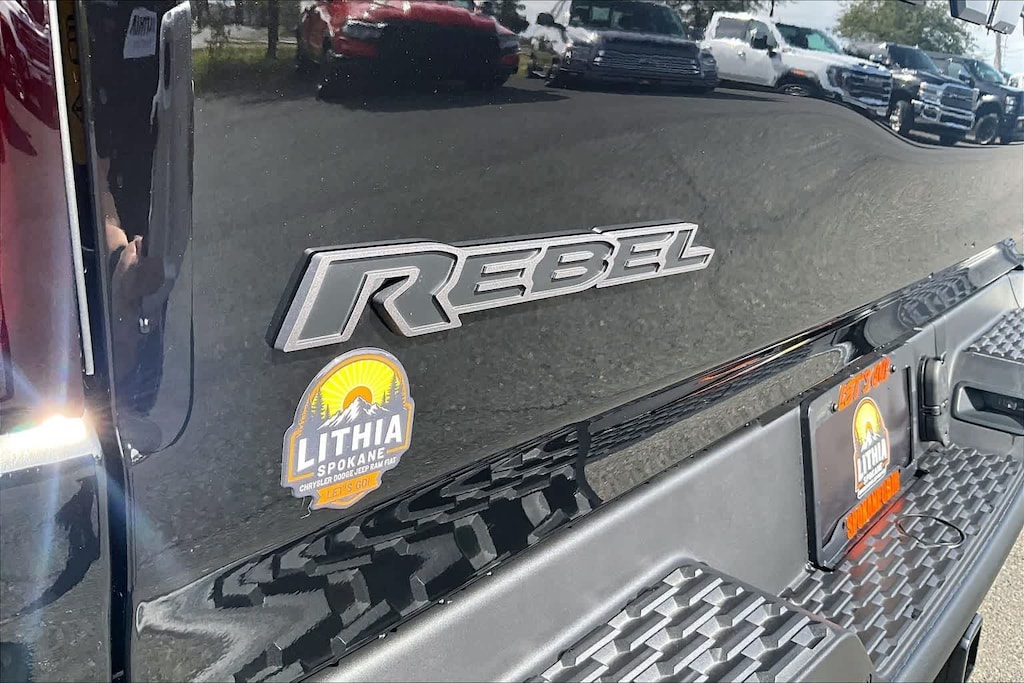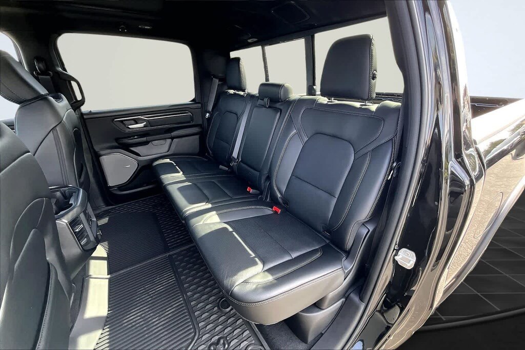 REBEL LEVEL 2 EQUIPMENT GROUP Power Adjustable Pedals w/Memory, Front Passenger Interactive Display, Power 2-Way Passenger Lumbar Adjust, Auto Power-Folding Mirrors, 115V Auxiliary Rear Power Outlet, Media Hub w/2 Charge Only USBs, Proximity Approach/Departure Lamps, Power Adjust 8-Way Front Passenger Seat, Security Alarm, Dual Wireless Charging Pad, harman/kardon® 19 Speaker Premium Sound, Rear Window Defroster, Rain Sensitive Windshield Wipers, Auto Dim Exterior Driver Mirror, Accent Color Door Handles, Heated Second Row Seats, Black Painted Exterior Mirrors Caps, Exterior Mirrors Approach Lamps, Smartphone As A Key Capable, 14.4 Touchscreen Display, Accent Color Premium Power Mirrors, Exterior Mirrors w/Supplemental Signals, Exterior Mirrors Courtesy Lamps, Radio: Uconnect 5 Nav w/14.4, DUAL-PANE PANORAMIC SUNROOF Dome Dual LED Reading Lamp, BLACK, LUX LEATHER TRIMMED BUCKET SEATS Power 2-Way Passenger Lumbar Adjust, Ventilated Front Seats, Power Adjust 8-Way Front Passenger Seat, TRANSMISSION: 8-SPEED AUTOMATIC (8HP75) (STD), ENGINE: 3.0L I6 HURRICANE SO TWIN TURBO ESS (STD). Ram Rebel with Diamond Black Crystal Pearlcoat exterior and Black interior features a Straight 6 Cylinder Engine with 420 HP at 5200 RPM*.