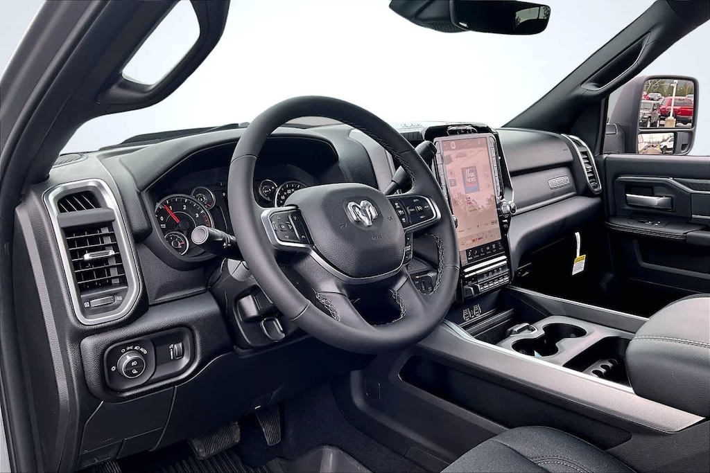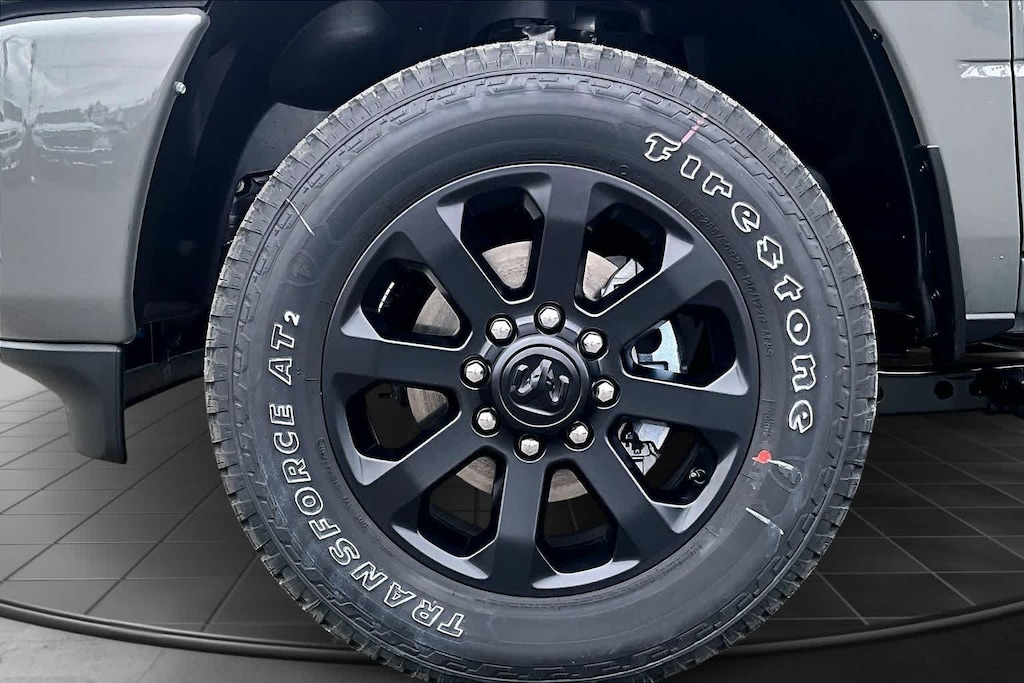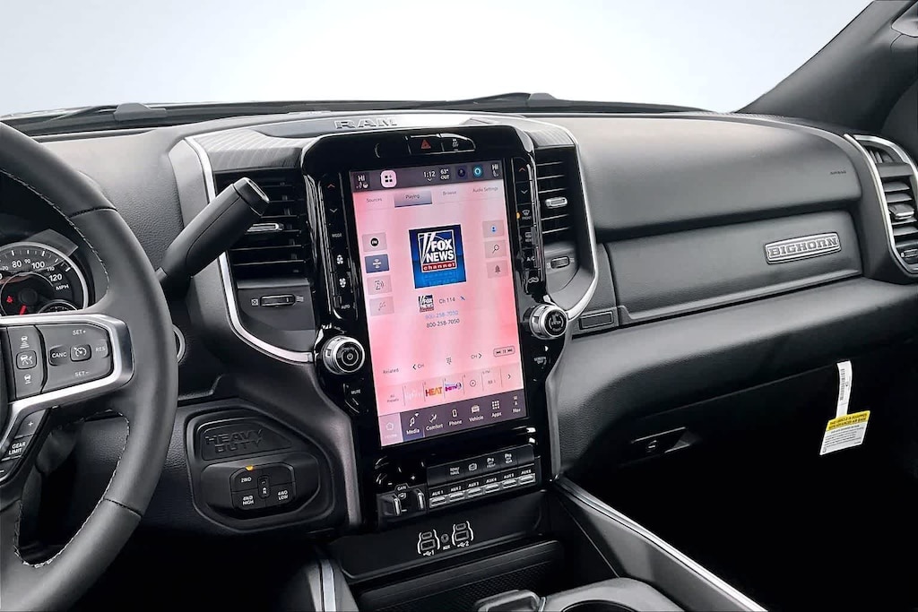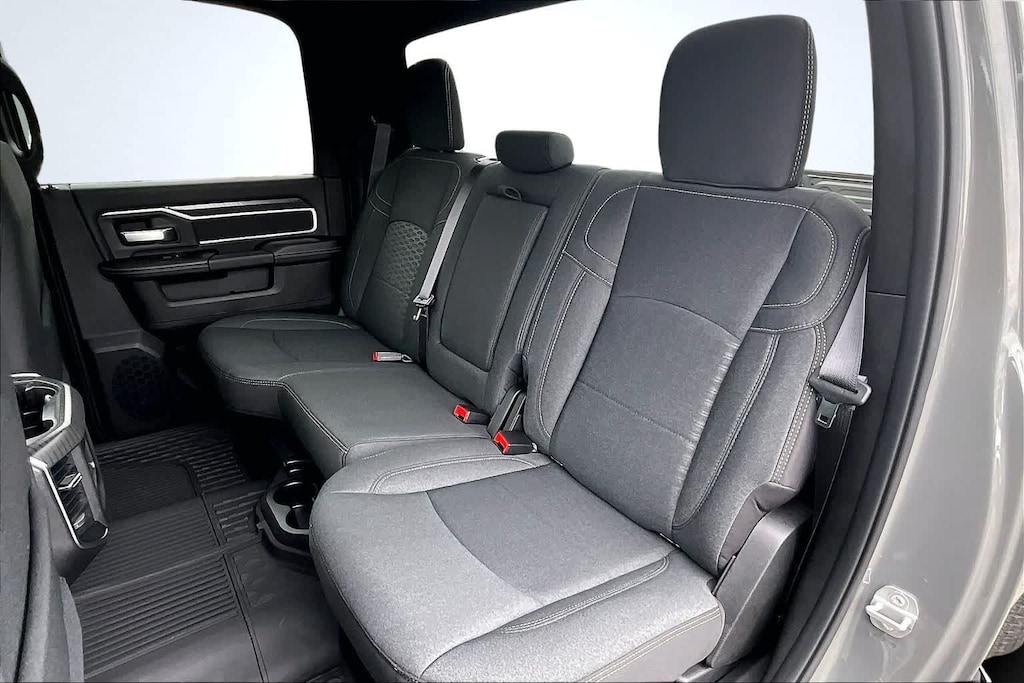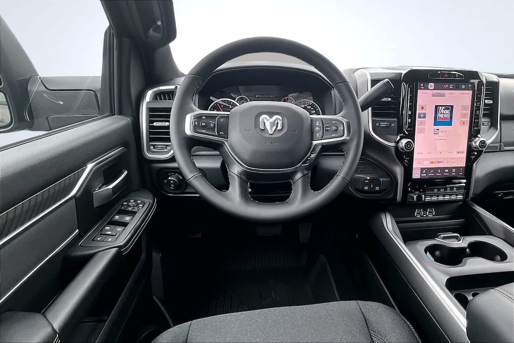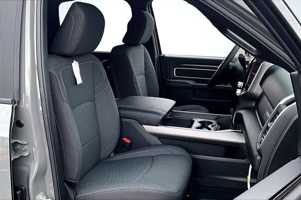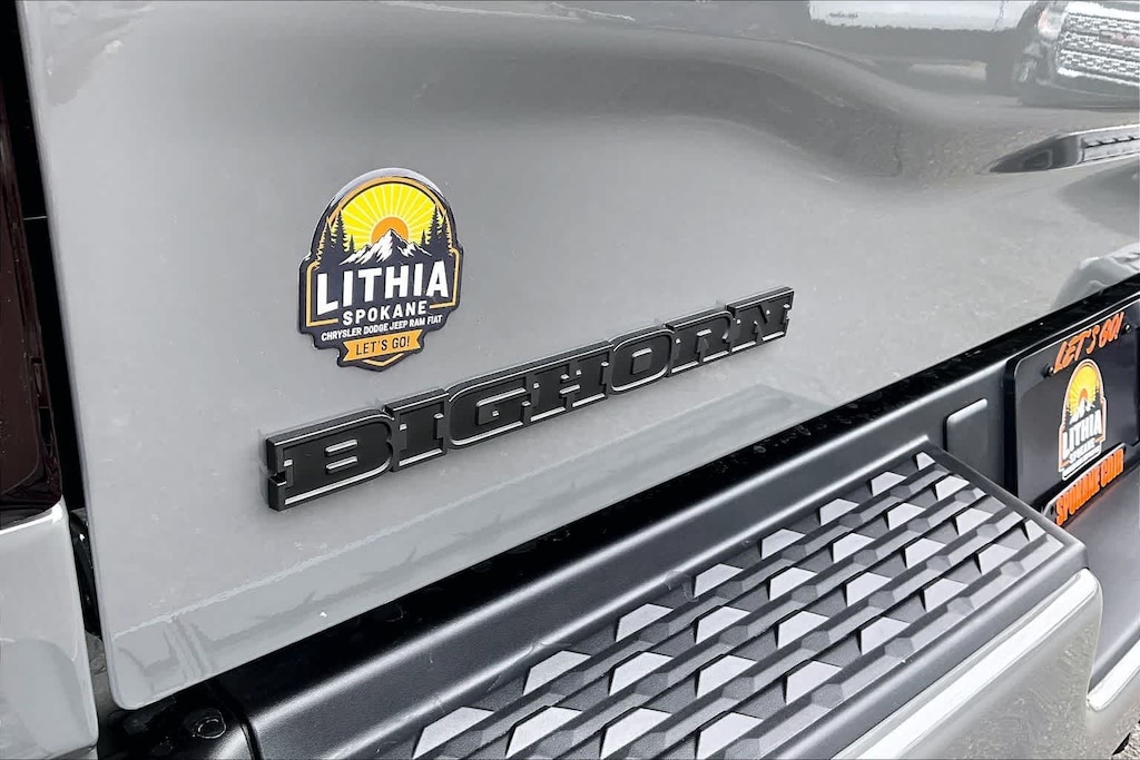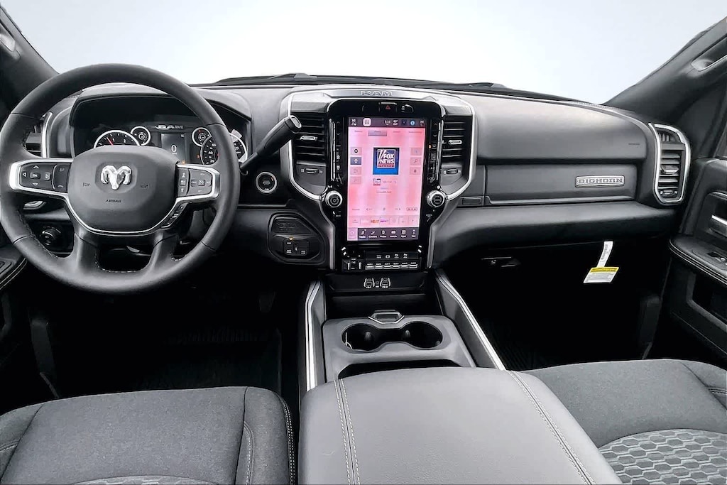 BIG HORN LEVEL 1 PLUS EQUIPMENT GROUP Emergency Vehicle Alert System (EVAS), 12 Touchscreen Display, Glove Box Lamp, Auto Power-Folding Mirrors, Footwell Courtesy Lamp, Anti-Spin Differential Rear Axle, MOPAR Deployable Bed Step, Alexa Built-In, Forward & Reverse Utility Lights, Locking Lower Glove Box, Remote Start System, 9 Alpine Speakers w/Subwoofer, Disassociated Touchscreen Display, Dual Glove Boxes, 2nd Row In Floor Storage Bins, Rear View Auto Dim Mirror, Rear Dome w/On/Off Switch Lamp, LED Bed Lighting, GPS Navigation, SiriusXM w/360L, Connected Travel & Traffic Services, Foam Bottle Insert (Door Trim Panel), Big Horn IP Badge, Off-Road Info Pages, Trailer Tow Pages, HD Radio, Radio: Uconnect 5 Nav w/12.0 Display, Power Heated Folding Telescopic Mirrors, Steering Wheel Mounted, NIGHT EDITION Gloss Black Nostrils/Mic Black Grille, Tires: LT285/60R20E OWL On/Off Road, Black Exterior Truck Badging, Wheels: 20 x 8.0 Black Painted Aluminum, Body Color Grille-Surround, Black Interior Accents, Black Wheel Center Hub, Painted Front Bumper, Painted Rear Bumper, PAINTED FLAT WHEEL-TO-WHEEL SIDE STEPS, HEATED SEATS & WHEEL GROUP Heated Steering Wheel, Heated Front Seats, BLACK, PREMIUM CLOTH BUCKET SEATS Bucket Seats, Power Adjust 8-Way Driver Seat, Folding Flat Load Floor Storage, Rear 60/40 Folding Seat, Front Seat Back Map Pockets, Power 2-Way Driver Lumbar Adjust, Full Length Upgraded Floor Console, TRANSMISSION: 8-SPEED TORQUEFLITE HD AUTOMATIC. Ram Big Horn with Ceramic Gray Clearcoat exterior and Black interior features a Straight 6 Cylinder Engine with 405 HP at 5600 RPM*.