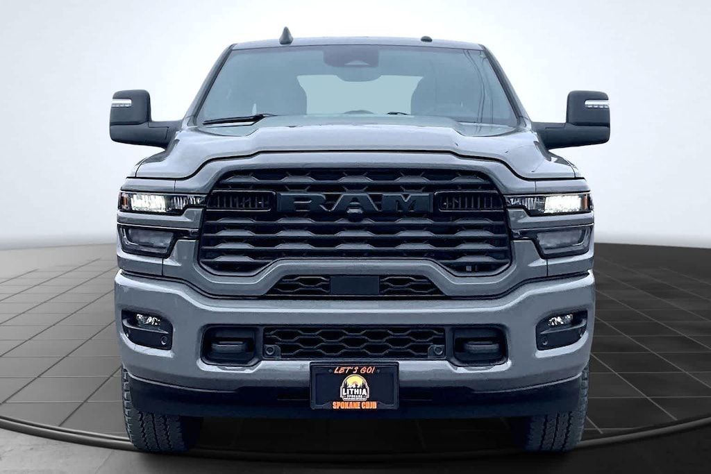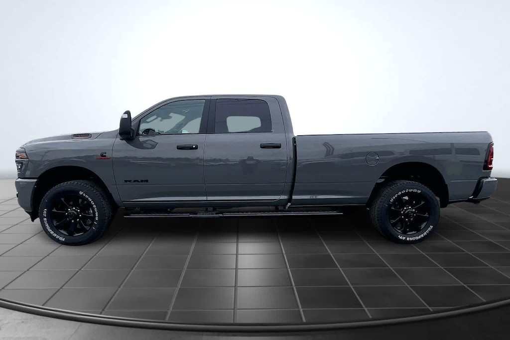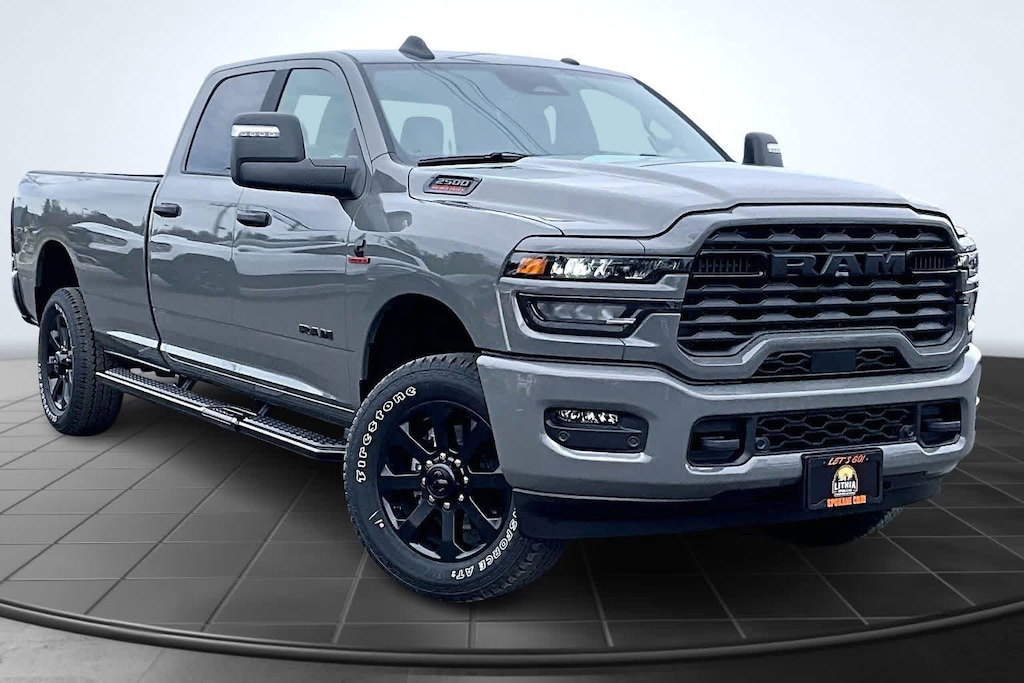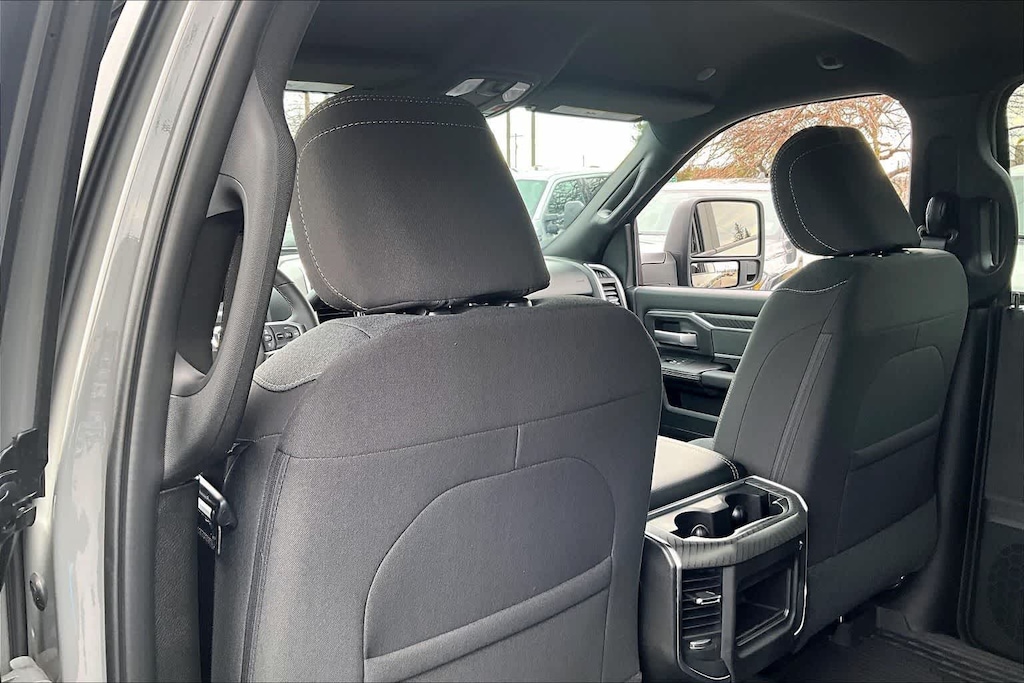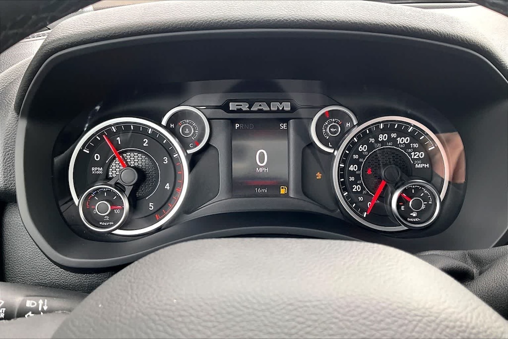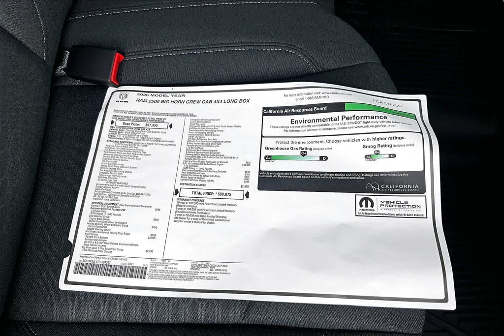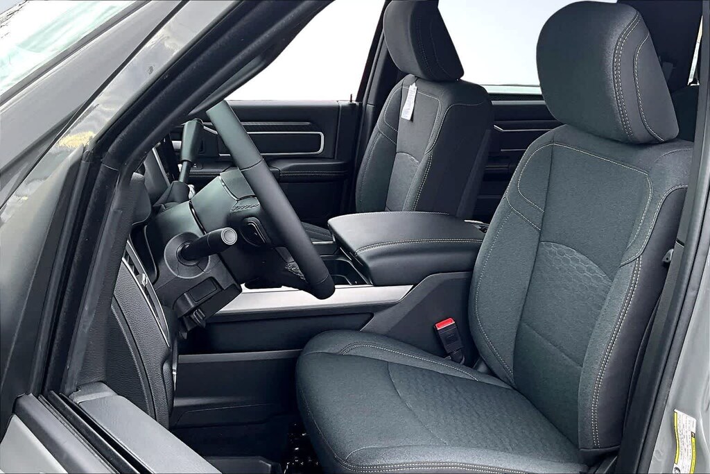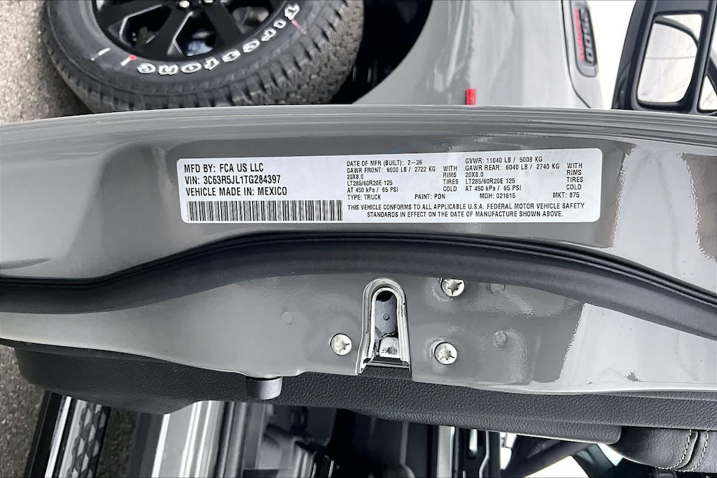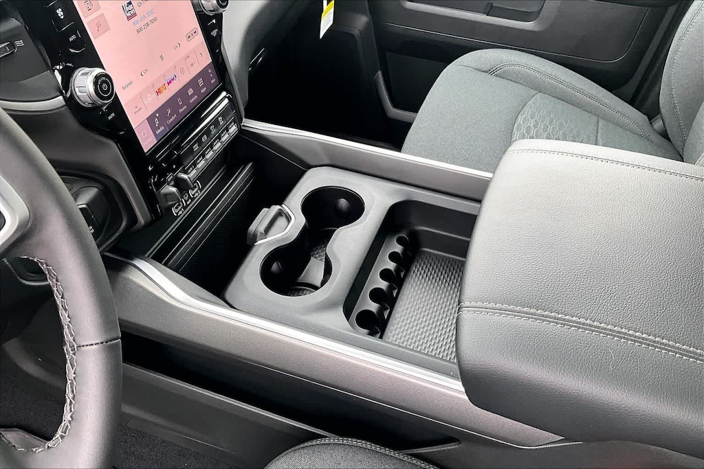BIG HORN LEVEL 1 PLUS EQUIPMENT GROUP Emergency Vehicle Alert System (EVAS), 12 Touchscreen Display, Glove Box Lamp, Auto Power-Folding Mirrors, Footwell Courtesy Lamp, Anti-Spin Differential Rear Axle, MOPAR Deployable Bed Step, Alexa Built-In, Forward & Reverse Utility Lights, Locking Lower Glove Box, Remote Start System, 9 Alpine Speakers w/Subwoofer, Disassociated Touchscreen Display, Dual Glove Boxes, 2nd Row In Floor Storage Bins, Rear View Auto Dim Mirror, Rear Dome w/On/Off Switch Lamp, LED Bed Lighting, GPS Navigation, SiriusXM w/360L, Connected Travel & Traffic Services, Foam Bottle Insert (Door Trim Panel), Big Horn IP Badge, Off-Road Info Pages, Trailer Tow Pages, HD Radio, Radio: Uconnect 5 Nav w/12.0 Display, Power Heated Folding Telescopic Mirrors, Steering Wheel Mounted, NIGHT EDITION Gloss Black Nostrils/Mic Black Grille, Tires: LT285/60R20E OWL On/Off Road, Black Exterior Truck Badging, Wheels: 20 x 8.0 Black Painted Aluminum, Body Color Grille-Surround, Black Interior Accents, Black Wheel Center Hub, Painted Front Bumper, Painted Rear Bumper, PAINTED FLAT WHEEL-TO-WHEEL SIDE STEPS, HEATED SEATS & WHEEL GROUP Heated Steering Wheel, Heated Front Seats, BLACK, PREMIUM CLOTH BUCKET SEATS Bucket Seats, Power Adjust 8-Way Driver Seat, Folding Flat Load Floor Storage, Rear 60/40 Folding Seat, Front Seat Back Map Pockets, Power 2-Way Driver Lumbar Adjust, Full Length Upgraded Floor Console, TRANSMISSION: 8-SPEED TORQUEFLITE HD AUTOMATIC. Ram Big Horn with Ceramic Gray Clearcoat exterior and Black interior features a Straight 6 Cylinder Engine with 405 HP at 5600 RPM*.
