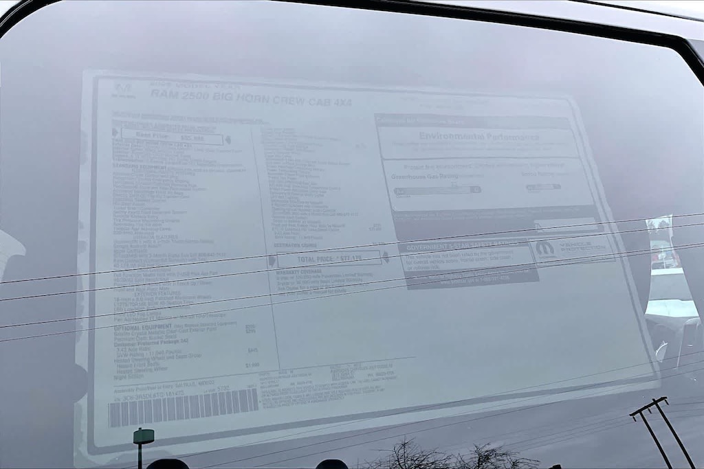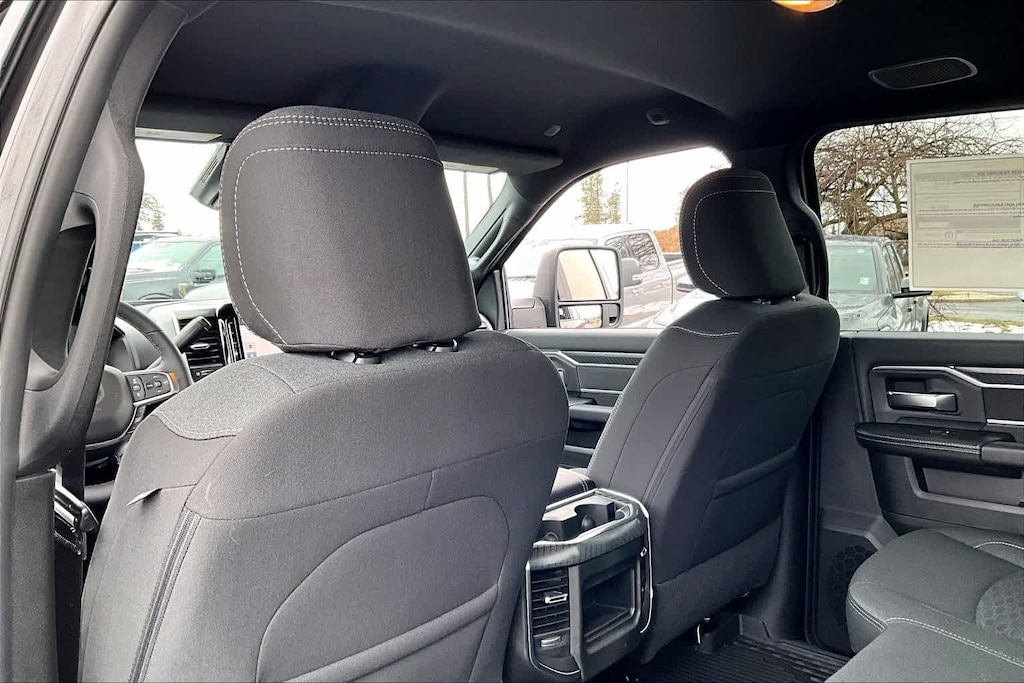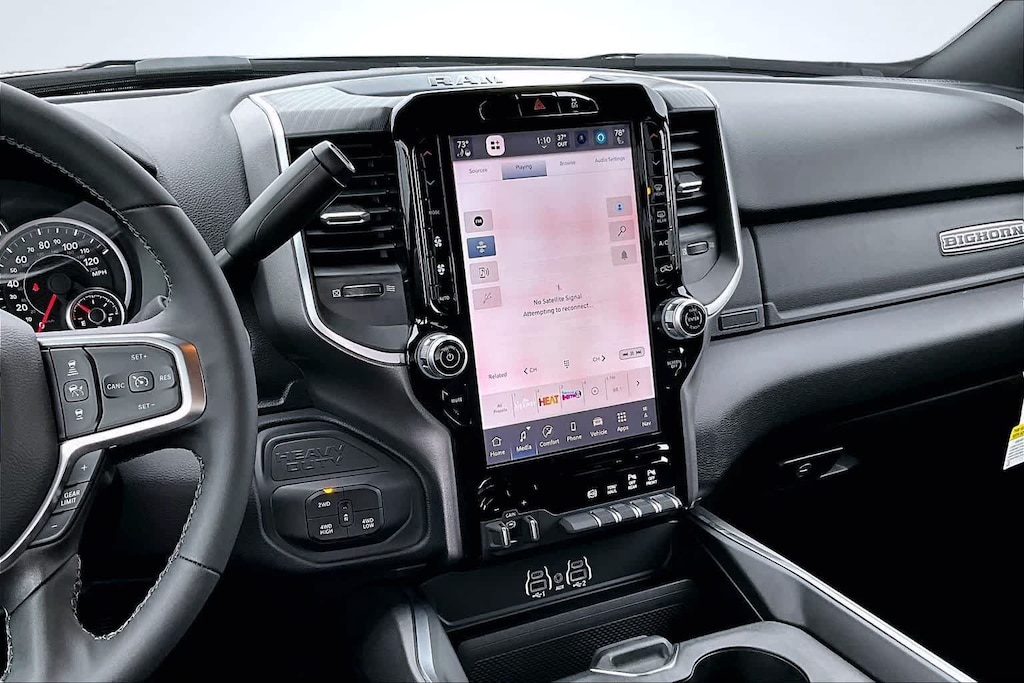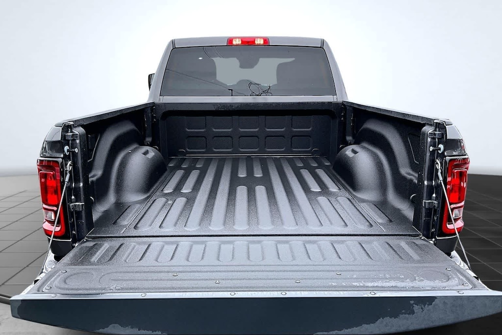ENGINE: 6.7L I6 CUMMINS HO TURBO DIESEL Selective Catalytic Reduction (Urea), Dual 730 Amp Maintenance Free Batteries, Cummins Turbo Diesel Badge, Heavy Duty Engine Cooling, Diesel Exhaust Brake, Supplemental Heater, 3.42 Axle Ratio, Front Bumper Sight Shields, Capless Fuel Fill w/o Discriminator, GVWR: 11,040 lbs, BIG HORN LEVEL 1 PLUS EQUIPMENT GROUP Emergency Vehicle Alert System (EVAS), 12 Touchscreen Display, Glove Box Lamp, Auto Power-Folding Mirrors, Footwell Courtesy Lamp, Anti-Spin Differential Rear Axle, MOPAR Deployable Bed Step, Alexa Built-In, Forward & Reverse Utility Lights, Locking Lower Glove Box, Remote Start System, 9 Alpine Speakers w/Subwoofer, Disassociated Touchscreen Display, Dual Glove Boxes, 2nd Row In Floor Storage Bins, Rear View Auto Dim Mirror, Rear Dome w/On/Off Switch Lamp, LED Bed Lighting, GPS Navigation, SiriusXM w/360L, Connected Travel & Traffic Services, Foam Bottle Insert (Door Trim Panel), Big Horn IP Badge, Off-Road Info Pages, Trailer Tow Pages, HD Radio, Radio: Uconnect 5 Nav w/12.0 Display, Power Heated Folding Telescopic Mirrors, Steering Wheel Mounted, NIGHT EDITION Gloss Black Nostrils/Mic Black Grille, Tires: LT285/60R20E OWL On/Off Road, Black Exterior Truck Badging, Wheels: 20 x 8.0 Black Painted Aluminum, Body Color Grille-Surround, Black Interior Accents, Black Wheel Center Hub, Painted Front Bumper, Painted Rear Bumper, HEATED SEATS & WHEEL GROUP Heated Steering Wheel, Heated Front Seats, BLACK, PREMIUM CLOTH BUCKET SEATS Bucket Seats, Power Adjust 8-Way Driver Seat, Folding Flat Load Floor Storage, Rear 60/40 Folding Seat, Front Seat Back Map Pockets, Power 2-Way Driver Lumbar Adjust, Full Length Upgraded Floor Console, TRANSMISSION: 8-SPEED TORQUEFLITE HD AUTOMATIC. Ram Big Horn with Granite Crystal Metallic Clearcoat exterior and Black interior features a Straight 6 Cylinder Engine with 430 HP at 2800 RPM*.