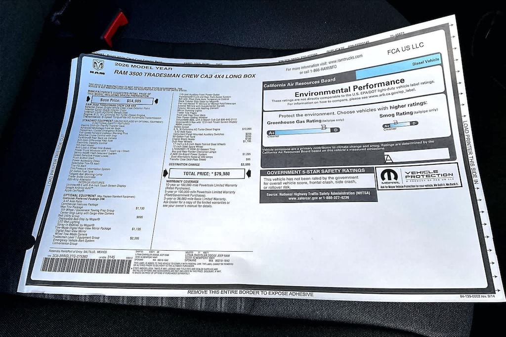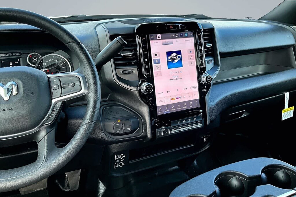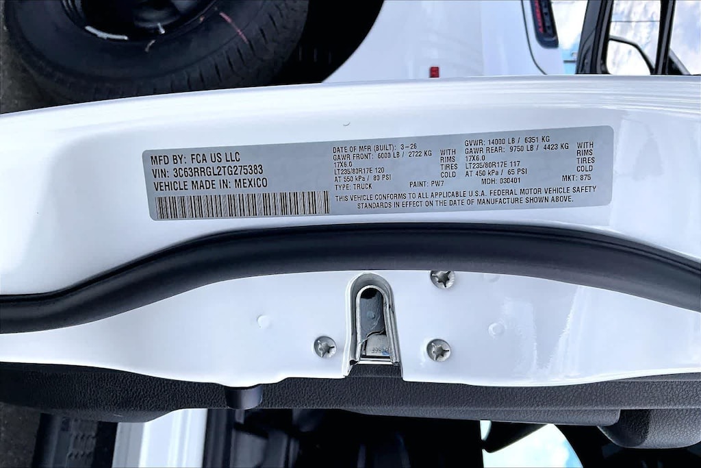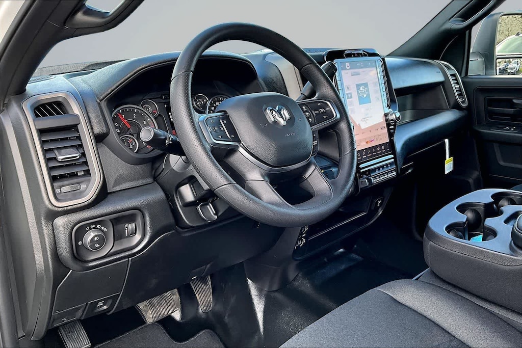 ENGINE: 6.7L I6 CUMMINS HO TURBO DIESEL Selective Catalytic Reduction (Urea), Dual 730 Amp Maintenance Free Batteries, Cummins Turbo Diesel Badge, Heavy Duty Engine Cooling, Current Generation Engine Controller, Diesel Exhaust Brake, Supplemental Heater, 3.42 Axle Ratio, Front Bumper Sight Shields, Capless Fuel Fill w/o Discriminator, TRADESMAN LEVEL 1 EQUIPMENT GROUP Convenience Group, Rear View Auto Dim Mirror, For Details Visit DriveUconnect.com, For More Info, Call 800-643-2112, Rear Power Sliding Window, Emergency Vehicle Alert System (EVAS), 12 Touchscreen Display, Tinted Acoustic Windshield Glass, GPS Navigation, Exterior Mirrors w/Heating Element, MOPAR Black Tubular Side Steps, SiriusXM w/360L, Connected Travel & Traffic Services, Mirror Running Lights, Exterior 115V AC Outlet, Alexa Built-In, Carpet Floor Covering, Power-Adjustable Convex Aux Mirrors, Off-Road Information Pages, Trailer Tow Pages, 400W Inverter, Disassociated Touchscreen Display, HD Radio, Power Heat Fold Telescopic Mirrors, Radio: Uconnect 5 Nav w/12.0 Display, Exterior Mirrors w/Supplemental Signals, Exterior Mirrors Courtesy Lamps, Air, DUAL REAR WHEELS Clearance Lamps, Tires: LT235/80R17E BSW All Season, 17 Steel Spare Wheel, Box & Rear Fender Clearance Lamps, 6000# Front Axle w/Hub Ext, Nexen Brand Tires, GVWR: 14,000 lb, Rear Wheelhouse Liners, BED UTILITY GROUP MOPAR Spray In Bedliner, LED Bed Lighting, MOPAR Deployable Bed Step, ENGINE: 6.4L V8 HEMI HD (STD), BLACK, CLOTH 40/20/40 BENCH SEAT. Ram Tradesman with Bright White Clearcoat exterior and Black interior features a Straight 6 Cylinder Engine with 430 HP at 2800 RPM*.