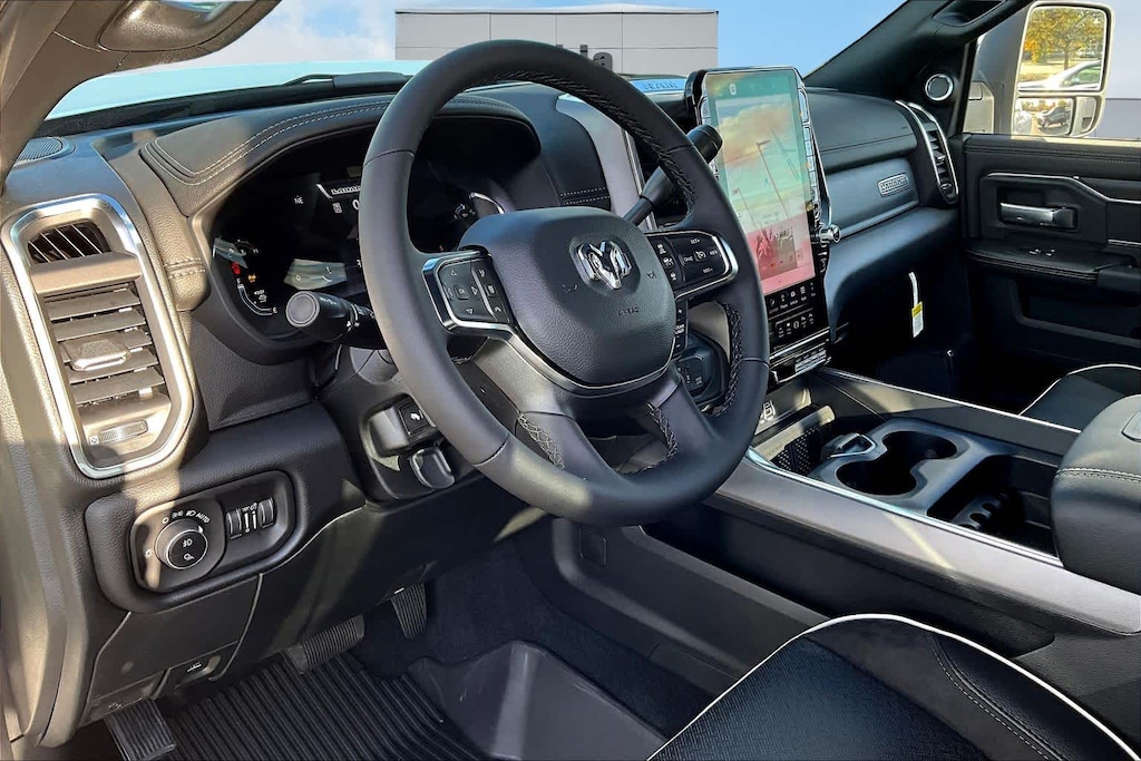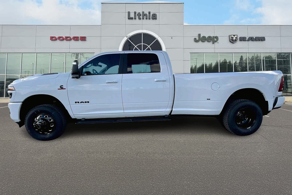ENGINE: 6.7L I6 CUMMINS HO TURBO DIESEL Selective Catalytic Reduction (Urea), Dual 730 Amp Maintenance Free Batteries, Cummins Turbo Diesel Badge, Heavy Duty Engine Cooling, Current Generation Engine Controller, Diesel Exhaust Brake, Supplemental Heater, 3.42 Axle Ratio, Front Bumper Sight Shields, Capless Fuel Fill w/o Discriminator, LARAMIE LEVEL 2 PLUS EQUIPMENT GROUP Power Adjustable Pedals w/Memory, For Details Visit DriveUconnect.com, For More Info, Call 800-643-2112, Power Deployable Running Boards, Drowsy Driver Detection, MOPAR Deployable Bed Step, Active Lane Management System, Remote Tailgate Release, 17 Speaker harman/kardon® Premium Sound, 2nd Row In Floor Storage Bins, CTR Stop Lamp w/Cargo View Camera, Rain Sensitive Windshield Wipers, LED Bed Lighting, Traffic Sign Recognition, Adaptive Steering System, Auto Dimming Exterior Mirrors, Foam Bottle Insert (Door Trim Panel), 14.4 Touchscreen Display, Power Heat Fold Memory Telescopic Mirrors, Radio: Uconnect 5 Nav w/14.4 Display, MOPAR Spray In Bedliner, Auto High Beam Headlamp Control, Exterior Mirrors w/Memory, Auto Dimming Exterior Passenger Mirror, Auto, TOWING TECHNOLOGY GROUP CTR Stop Lamp w/Cargo View Camera, Surround View Camera System, Trailer Tire Pressure Monitoring System, Trailer Reverse Guidance, DUAL REAR WHEELS Clearance Lamps, Tires: LT235/80R17E BSW All Season, 17 Steel Spare Wheel, Box & Rear Fender Clearance Lamps, Center Hub, 6000# Front Axle w/Hub Ext, Wheels: 17 x 6.0 Polished Aluminum, Nexen Brand Tires, GVWR: 14,000 lb, POWER SUNROOF, TOW-MODE DIGITAL REAR VIEW MIRROR PACKAGE Digital Rearview Mirror, Tow-Mode Camera (Wired), MOPAR FRONT & REAR RUBBER FLOOR MATS, TRANSMISSION: 8-SPEED TORQUEFLITE HD AUTOMATIC, BLACK, LEATHER TRIMMED BUCKET SEATS Bucket Seats, Dual Wireless Charging Pad, Full Length Upgraded Floor Console. Ram Laramie with Bright White Clearcoat exterior and Black interior features a Straight 6 Cylinder Engine with 430 HP at 2800 RPM*.