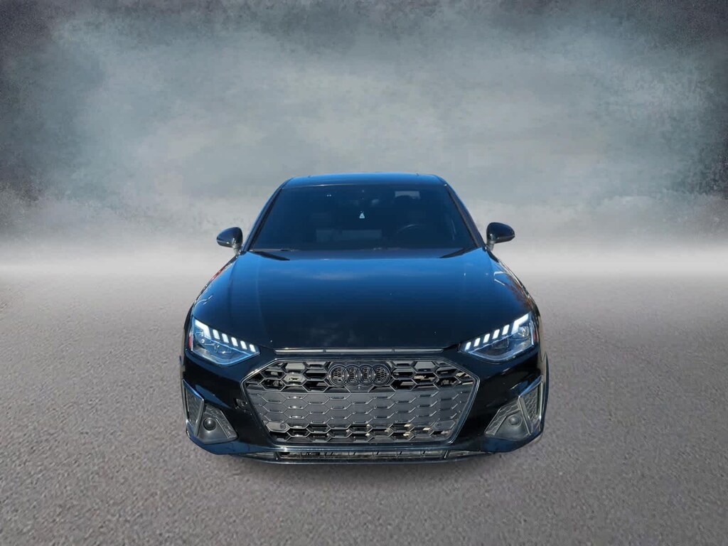 Mythos Black Metallic 2022 Audi A4 45 S line Premium Plus quattro quattro 7-Speed Automatic S tronic 2.0L TFSI 7-Speed Automatic S tronic, quattro, Black Leather, 10 Speakers, 4-Wheel Disc Brakes, ABS brakes, Air Conditioning, Alloy wheels, AM/FM radio, Anti-whiplash front head restraints, Audi smartphone interface (Apple CarPlay/Android Auto), Auto High-beam Headlights, Auto-dimming Rear-View mirror, Automatic temperature control, Brake assist, Bumpers: body-color, Compass, Delay-off headlights, Driver door bin, Driver vanity mirror, Dual front impact airbags, Dual front side impact airbags, Electronic Stability Control, Emergency communication system: Audi connect CARE, Exterior Parking Camera Rear, Four wheel independent suspension, Front anti-roll bar, Front Bucket Seats, Front Center Armrest, Front dual zone A/C, Front fog lights, Front reading lights, Garage door transmitter: HomeLink, Genuine wood dashboard insert, Genuine wood door panel insert, Heated door mirrors, Heated front seats, Heated Front Sport Bucket Seats, Illuminated entry, Knee airbag, Leather Seating Surfaces, Leather Shift Knob, Leather steering wheel, Low tire pressure warning, Occupant sensing airbag, Outside temperature display, Overhead airbag, Overhead console, Panic alarm, Passenger door bin, Passenger vanity mirror, Power door mirrors, Power driver seat, Power moonroof, Power passenger seat, Power steering, Power windows, Radio data system, Radio: Audi Sound System, Rain sensing wipers, Rear air conditioning, Rear anti-roll bar, Rear reading lights, Rear seat center armrest, Rear window defroster, Remote keyless entry, Speed control, Speed-sensing steering, Speed-Sensitive Wipers, Split folding rear seat, Steering wheel mounted audio controls, Tachometer, Telescoping steering wheel, Tilt steering wheel, Traction control, Trip computer, Turn signal indicator mirrors, Variably intermittent wipers, Wheels: 18 5-Double-Spoke Design, 7-Speed Automatic S tronic, quattro, Black Leather.