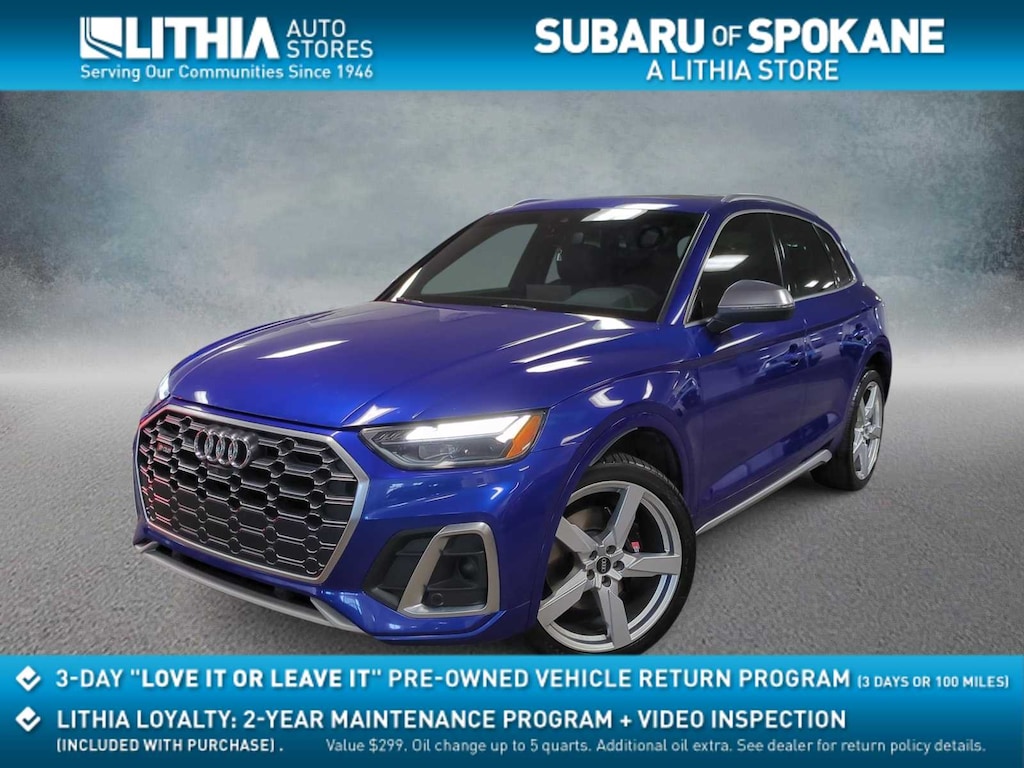 Clean CARFAX. Blue Metallic 2022 Audi SQ5 Premium Plus quattro quattro 8-Speed Automatic with Tiptronic 3.0L TFSI 10 Speakers, 3.204 Axle Ratio, 4-Wheel Disc Brakes, ABS brakes, Adaptive Cruise Control w/Traffic Jam Assist, Adaptive suspension, Air Conditioning, Alloy wheels, AM/FM radio, AM/FM Stereo, Audi Active Lane Assist, Audi Advanced Key, Audi Phone Box, Audi Phone Box Delete, Audi S Beam - Front Doors Only, Audi Virtual Cockpit Plus, Auto High-beam Headlights, Auto-Dimming Power Folding Exterior Mirrors, Auto-dimming Rear-View mirror, Automatic temperature control, Bang & Olufsen 3D Sound System, Brake assist, Bumpers: body-color, Compass, Convenience Package, Delay-off headlights, Driver door bin, Driver Seat Memory, Driver vanity mirror, Dual front impact airbags, Dual front side impact airbags, Electronic Stability Control, Emergency communication system: Audi connect CARE, Exterior Parking Camera Rear, Four wheel independent suspension, Front anti-roll bar, Front Bucket Seats, Front Center Armrest, Front dual zone A/C, Front fog lights, Front reading lights, Garage door transmitter: HomeLink, Hands-On Detection Steering Wheel, Heated door mirrors, Heated front seats, Heated Front Sport Seats, Heated Steering Wheel, Illuminated entry, Leather Shift Knob, Leather/Dinamica Seating Surfaces, Leatherette Covered Center Console, Low tire pressure warning, Navigation Package, Occupant sensing airbag, Outside temperature display, Overhead airbag, Overhead console, Panic alarm, Panoramic Sunroof, Passenger door bin, Passenger vanity mirror, Power door mirrors, Power driver seat, Power Liftgate, Power passenger seat, Power steering, Power windows, Premium Plus Package, Privacy Trunk Cover, Radio data system, Radio: MMI Navigation Plus, Rain sensing wipers, Rear air conditioning, Rear anti-roll bar, Rear fog lights, Rear reading lights, Rear seat center armrest, Rear window defroster, Rear window wiper, Remote keyless entry, Roof rack, Security system, SiriusXM All Access Service, Speed control, Speed-sensing steering, Speed-Sensitive Wipers, Split folding rear seat, Spoiler, Sport Exhaust Tips, Sport steering wheel, Steering wheel mounted audio controls, Tachometer, Telescoping steering wheel, Tilt steering wheel, Top View Camera System, Traction control, Trip computer, Turn signal indicator mirrors, Variably intermittent wipers, Wheels: 20 10-Spoke-Star Design, Wheels: 21 5-Arm Polygon Design.