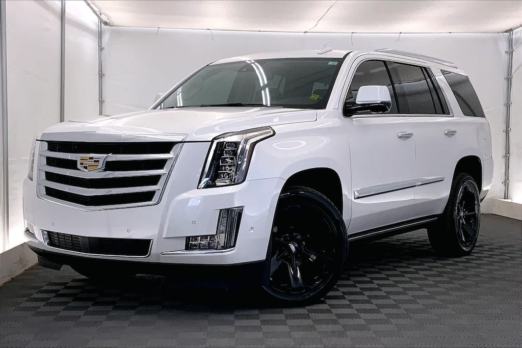 Clean CARFAX. Crystal White Tricoat 2020 Cadillac Escalade Premium Luxury 4WD 10-Speed Automatic with Overdrive 6.2L V8 4WD, Black Leather, 12-Way Power Front Passenger Seat Adjuster, 16 Speakers, 2-Presets Memory For Driver Seat Adjuster, 3.23 Axle Ratio, 3rd row seats: split-bench, 4-Wheel Disc Brakes, A/V remote, ABS brakes, Adaptive suspension, Adjustable pedals, Advanced Adaptive Cruise Control, Air Conditioning, Alloy wheels, AM/FM radio: SiriusXM, Apple CarPlay/Android Auto, Auto High-beam Headlights, Auto tilt-away steering wheel, Auto-dimming door mirrors, Auto-dimming Rear-View mirror, Auto-leveling suspension, Automatic Seat Belt Tightening, Automatic temperature control, Bodyside moldings, Bose Centerpoint 16 Speaker Surround Sound System, Brake assist, Bumpers: body-color, Compass, Delay-off headlights, Driver Assist Package, Driver Awareness Package, Driver door bin, Driver vanity mirror, Dual front impact airbags, Dual front side impact airbags, Electronic Powered Parking Brake, Electronic Stability Control, Emergency communication system: OnStar and Cadillac connected services capable, Enhanced Automatic Emergency Braking, Exterior Parking Camera Rear, Forward Collision Alert, Front anti-roll bar, Front Bucket Seats, Front Center Armrest w/Storage, Front dual zone A/C, Front reading lights, Front wheel independent suspension, Fully automatic headlights, Garage door transmitter, HD Radio, Headphones, Heads-Up Display, Heated & Cooled Driver & Front Passenger Seats, Heated door mirrors, Heated front seats, Heated rear seats, Heated steering wheel, Illuminated entry, Illuminating Door Handles, Inclination Sensor, IntelliBeam Automatic High Beam On/Off, Lane Change Alert w/Side Blind Zone Alert, Lane Keep Assist w/Lane Departure Warning, Leather Seating Surfaces, Leather Shift Knob, Leather steering wheel, Low tire pressure warning, Magnetic Ride Control Suspension, Memory seat, Navigation System, Occupant sensing airbag, Outside temperature display, Overhead airbag, Overhead console, Panic alarm, Passenger door bin, Passenger vanity mirror, Pedal memory, Power Configurable Second Row Bucket Seats, Power door mirrors, Power driver seat, Power Liftgate, Power moonroof, Power passenger seat, Power steering, Power Tilt-Sliding Sunroof w/Express-Open/Close, Power windows, Power-Retractable Assist Steps, Preferred Equipment Group 1SC, Radio data system, Radio: AM/FM Cadillac User Experience w/Nav, Rain sensing wipers, Rear air conditioning, Rear anti-roll bar, Rear audio controls, Rear Camera Mirror, Rear Camera Mirror Washer, Rear Cross Traffic Alert, Rear reading lights, Rear Seat Entertainment System, Rear window defroster, Rear window wiper, Reconfigurable 4-Color Head-Up Display, Remote keyless entry, Reverse Automatic Braking, Running Side Board Assist Steps, Safety Alert Seat, Security system, SiriusXM NavTraffic, SiriusXM Radio, Speed control, Split folding rear seat, Spoiler, Steering wheel memory, Steering wheel mounted audio controls, Tachometer, Telescoping steering wheel, Theft-Deterrent Alarm System, Theft-Deterrent Package, Tilt steering wheel, Traction control, Trip computer, Turn signal indicator mirrors, VAC Power 17 Disc Brakes, Variably intermittent wipers, Vehicle Interior Movement Sensor, Ventilated front seats, Wheels: 22 6-Spoke High-Gloss Black Alloy (LPO), Wheels: 22 Interim (LPO), Wheels: 22 x 9 7-Spoke Alloy w/Chrome Inserts, 4WD, Black Leather.