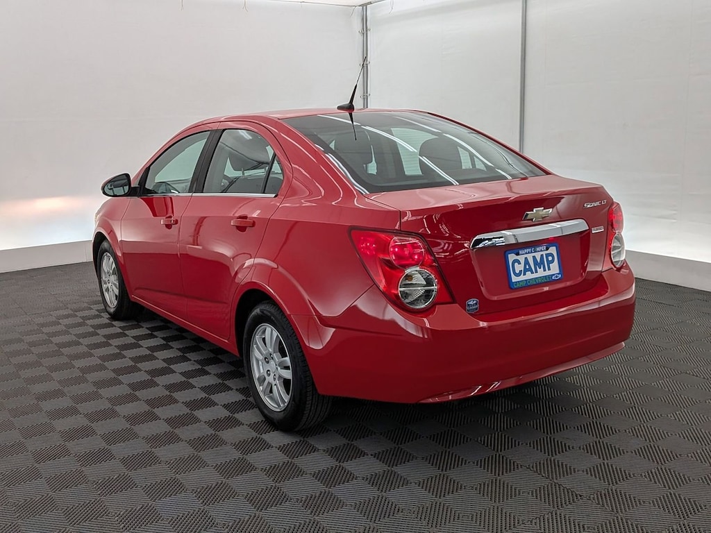 Victory Red 2013 Chevrolet Sonic LT FWDEfficient, practical, and fun to drive, this Chevrolet Sonic LT is a smart choice for anyone looking for an affordable compact car with a surprisingly enjoyable driving experience. With its turbocharged performance and excellent fuel economy, itâs well-suited for commuting and everyday city driving.Key Features:1.4L ECOTEC turbocharged 4-cylinder engine6-speed automatic transmissionFWD for efficient and predictable handlingSteering wheel-mounted audio controls for convenienceElectronic Stability Control for added confidenceTraction control for improved road stabilityFully automatic headlights for ease of useCompact design ideal for city driving and easy parkingEnjoy an impressive 27 MPG city / 37 MPG highway, making this Sonic an economical option that helps keep fuel costs low while still offering responsive performance.Recognized as an IIHS Top Safety Pick, this Sonic LT adds peace of mind to its already strong value and efficiency.This is Car Shopping Made Easy! We provide a vast selection of pre-owned vehicles, exceptional car care, and a commitment to delivering an outstanding customer experience.Camp Chevrolet of Spokane