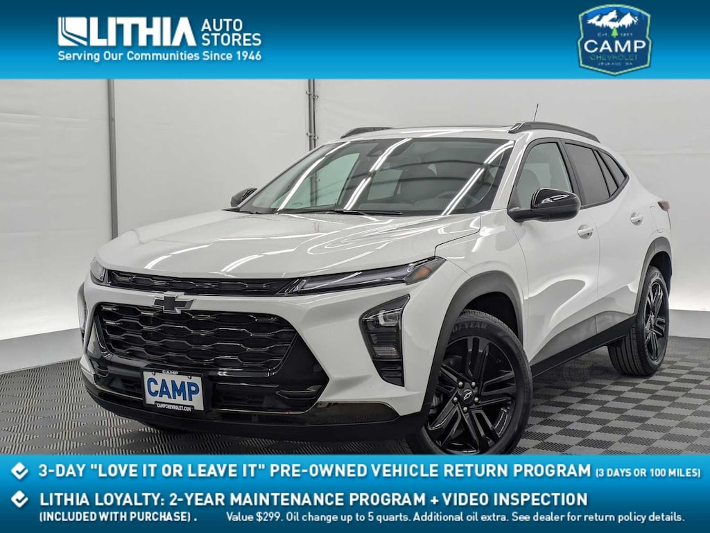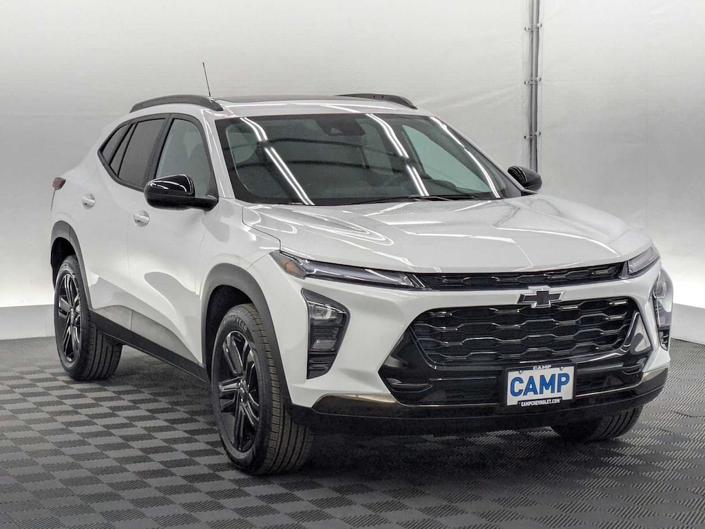 Summit White 2025 Chevrolet Trax ACTIV FWD 6-Speed Automatic 1.2L I3 DI Turbocharged DOHC 12V LEV3-ULEV70 137hp Evotex Seat Trim, Front Bucket Seats, Power Sliding Glass Sunroof with Manual Shade, Preferred Equipment Group 1SA, Radio: AM/FM Stereo Audio System, Sunroof Package, Wheels: 18 Black-Painted Aluminum, Wireless Charging.