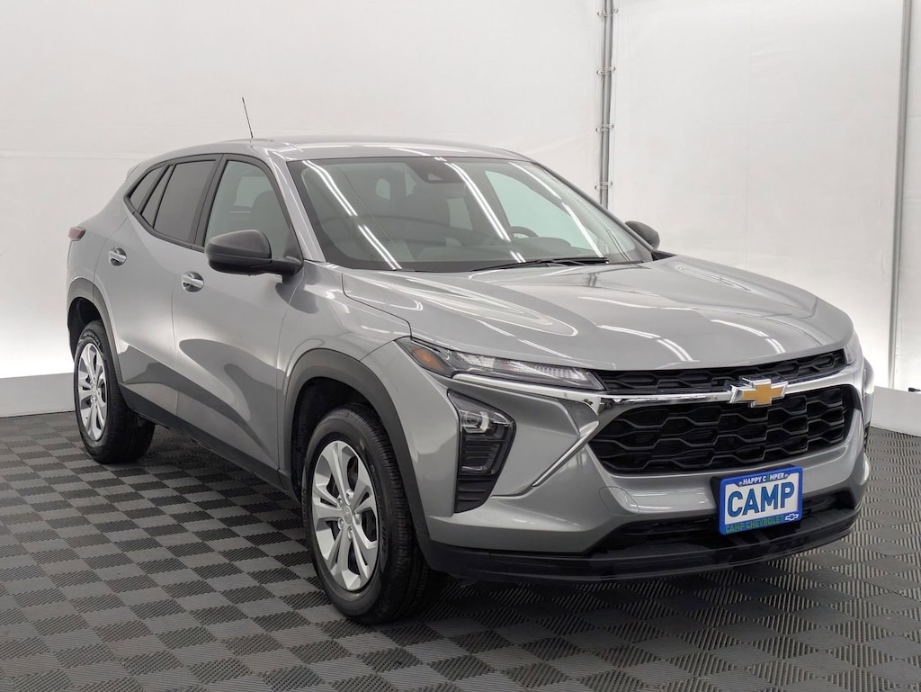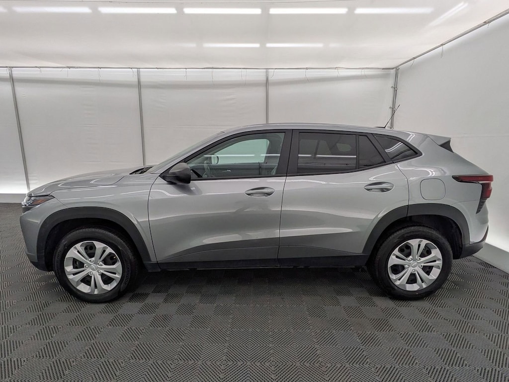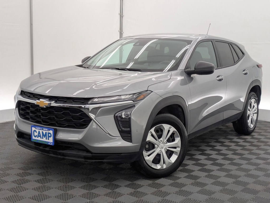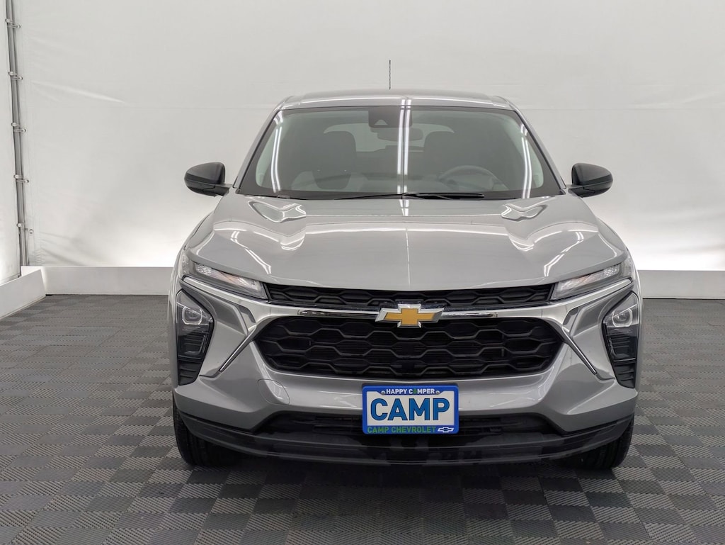 Sterling Gray Metallic 2025 Chevrolet Trax LS FWD 6-Speed Automatic 1.2L Ecotec Turbo DOHC DI w/VVT Electronic Stability Control, Fully automatic headlights, Preferred Equipment Group 1LS, Steering wheel mounted audio controls, Traction control.