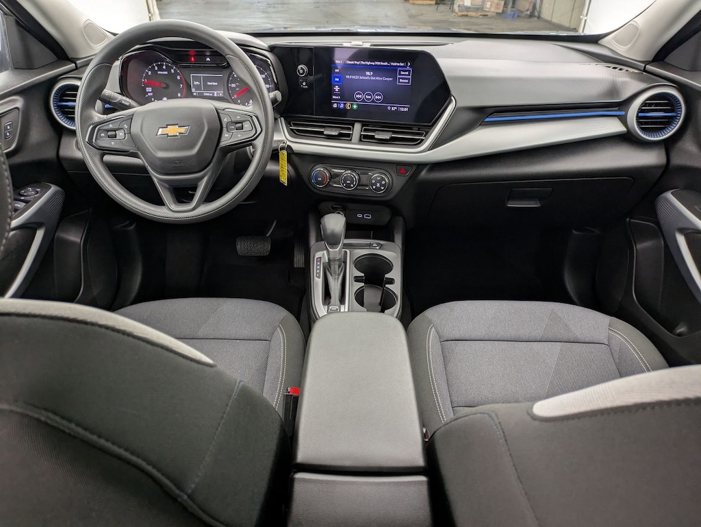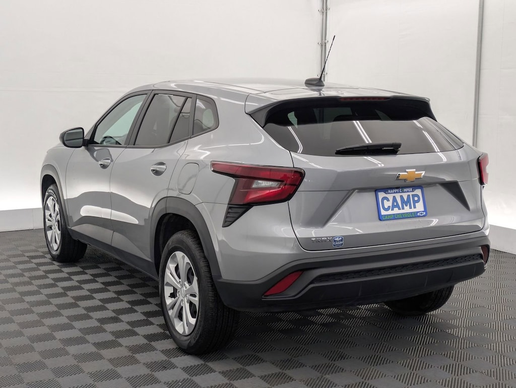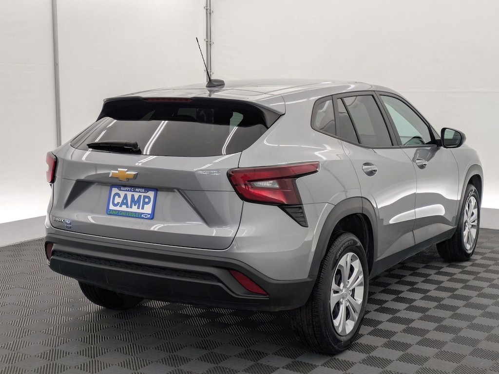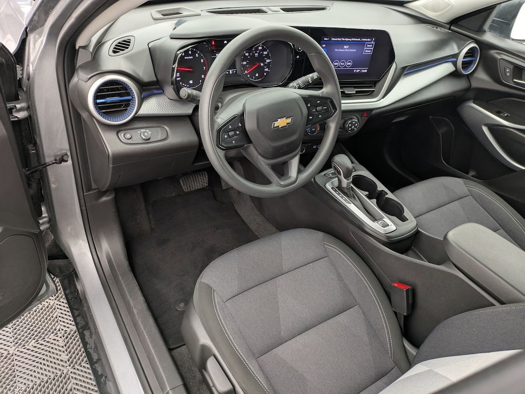 Sterling Gray Metallic 2025 Chevrolet Trax LS FWD 6-Speed Automatic 1.2L Ecotec Turbo DOHC DI w/VVT Electronic Stability Control, Fully automatic headlights, Preferred Equipment Group 1LS, Steering wheel mounted audio controls, Traction control.
