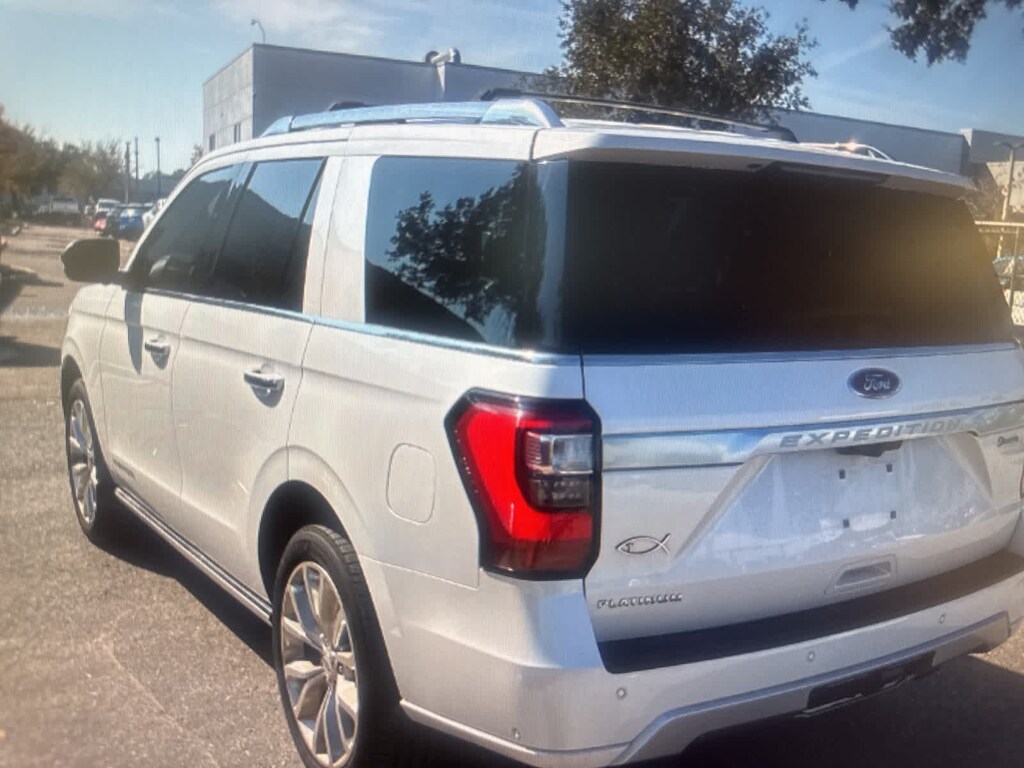 Clean CARFAX. White Platinum 2019 Ford Expedition Platinum 4WD 10-Speed Automatic EcoBoost 3.5L V6 GTDi DOHC 24V Twin Turbocharged 4WD, 12 Speakers, 22 Polished Aluminum Wheels, 2nd Row Bucket Seats, 3.31 Axle Ratio, 3rd row seats: split-bench, 4-Wheel Disc Brakes, ABS brakes, Adaptive suspension, Adjustable pedals, Air Conditioning, Alloy wheels, AM/FM radio: SiriusXM, AppLink/Apple CarPlay and Android Auto, Auto High-beam Headlights, Auto-dimming door mirrors, Auto-dimming Rear-View mirror, Automatic temperature control, Brake assist, Bumpers: body-color, Compass, Delay-off headlights, Driver door bin, Driver vanity mirror, Dual front impact airbags, Dual front side impact airbags, Dual-Headrest Rear-Seat Entertainment System, Electronic Limited Slip w/3.73 Axle Ratio, Electronic Stability Control, Emergency communication system: SYNC 3 911 Assist, Equipment Group 600A, Exterior Parking Camera Rear, Four wheel independent suspension, Front anti-roll bar, Front Bucket Seats, Front Center Armrest, Front dual zone A/C, Front fog lights, Front reading lights, Fully automatic headlights, Garage door transmitter, Genuine wood console insert, Genuine wood dashboard insert, Genuine wood door panel insert, Heated & Cooled Perforated Leather Fr Bucket Seats, Heated door mirrors, Heated front seats, Heated rear seats, Heated steering wheel, Heavy-Duty Engine Radiator, Heavy-Duty Trailer Tow Package, Illuminated entry, Integrated Trailer Brake Controller, Lane Departure Warning System, Leather steering wheel, Low tire pressure warning, Memory seat, Navigation System, Occupant sensing airbag, Outside temperature display, Overhead airbag, Overhead console, Panic alarm, Passenger door bin, Passenger vanity mirror, Pedal memory, Power door mirrors, Power driver seat, Power Liftgate, Power moonroof, Power passenger seat, Power steering, Power windows, Pro Trailer Backup Assist, Radio data system, Radio: B&O Sound System by Bang & Olufsen, Rain sensing wipers, Rear air conditioning, Rear anti-roll bar, Rear audio controls, Rear reading lights, Rear window defroster, Rear window wiper, Reclining 3rd row seat, Remote keyless entry, Reversible Cargo Mat, Roof rack, Security system, SiriusXM Satellite Radio, Speed control, Speed-sensing steering, Speed-Sensitive Wipers, Split folding rear seat, Steering wheel mounted audio co