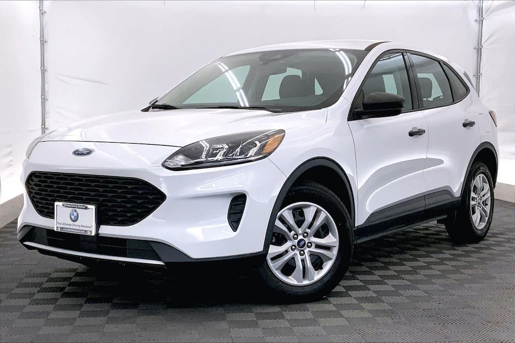 CARFAX One-Owner. Oxford White 2020 Ford Escape S AWD 8-Speed Automatic 1.5L EcoBoost AWD, 3.81 axle ratio, 4-Wheel Disc Brakes, 6 Speakers, ABS brakes, Air Conditioning, AM/FM radio, AM/FM Stereo, Auto High-beam Headlights, Brake assist, Bumpers: body-color, Cloth Front Bucket Seats, Compass, Delay-off headlights, Driver door bin, Driver vanity mirror, Dual front impact airbags, Dual front side impact airbags, Electronic Stability Control, Emergency communication system: SYNC 911 Assist, Equipment Group 100A, Exterior Parking Camera Rear, Four wheel independent suspension, Front anti-roll bar, Front Bucket Seats, Front Center Armrest, Front reading lights, Fully automatic headlights, Illuminated entry, Knee airbag, Low tire pressure warning, Occupant sensing airbag, Outside temperature display, Overhead airbag, Overhead console, Panic alarm, Passenger door bin, Passenger vanity mirror, Power door mirrors, Power steering, Power windows, Radio data system, Rear anti-roll bar, Rear reading lights, Rear window defroster, Rear window wiper, Remote keyless entry, Speed control, Speed-sensing steering, Speed-Sensitive Wipers, Split folding rear seat, Spoiler, Steering wheel mounted audio controls, SYNC Communications & Entertainment System, Tachometer, Telescoping steering wheel, Tilt steering wheel, Traction control, Trip computer, Variably intermittent wipers, Wheels: 17 Steel w/Sparkle Silver-Painted Covers, AWD.