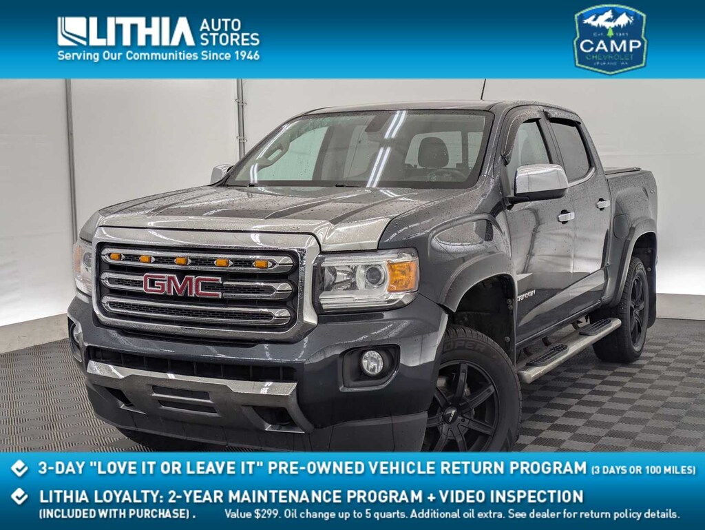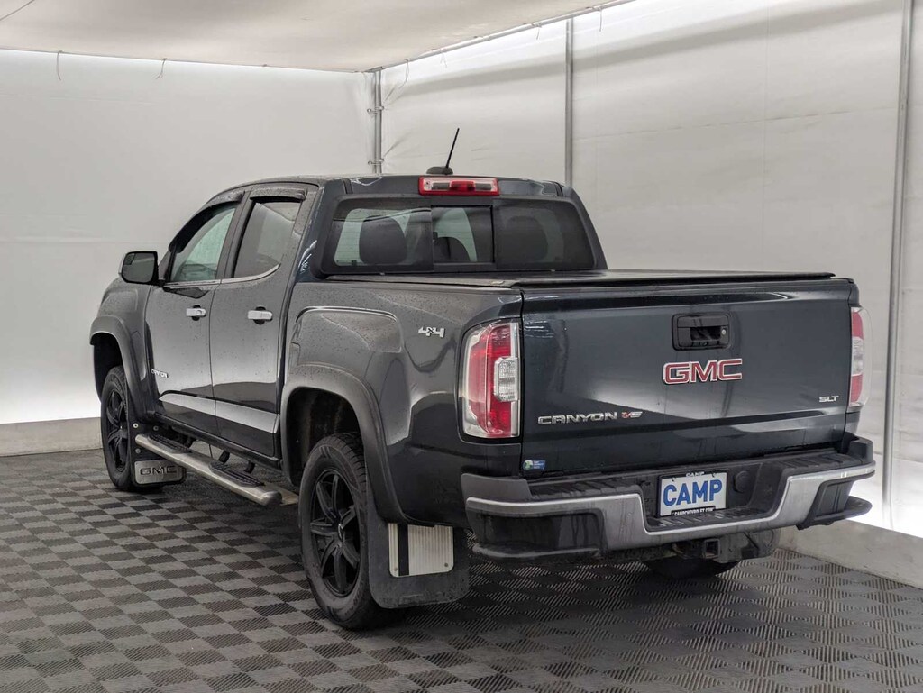 Cyber Gray Metallic 2017 GMC Canyon SLT 4WD 8-Speed Automatic V6 Fully automatic headlights, Heated front seats, Leather-Appointed Seat Trim, Preferred Equipment Group 4LT, Steering wheel mounted audio controls, Traction control.