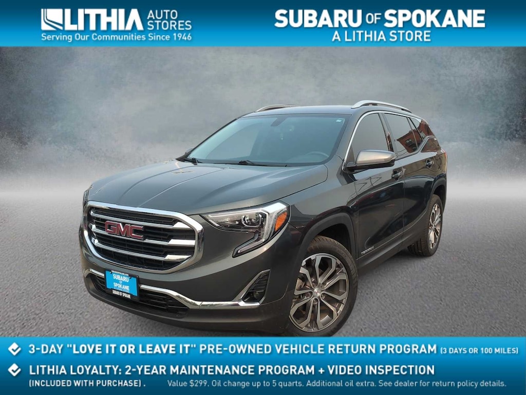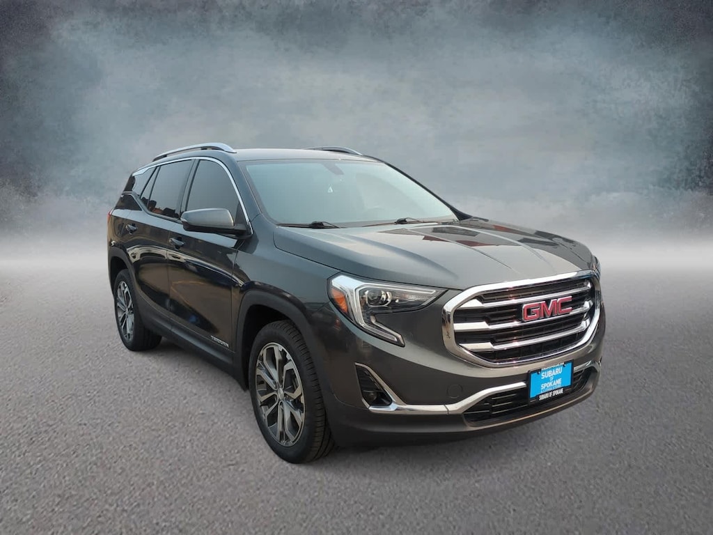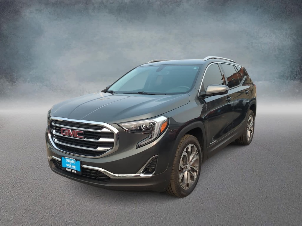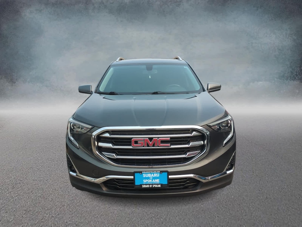 Clean CARFAX. Graphite Gray Metallic 2019 GMC Terrain SLT AWD 9-Speed Automatic 1.5L DOHC AWD, 2 USB Data Ports, 2 USB Data Ports w/SD Card Reader, 3.47 Axle Ratio, 4-Way Manual Front Passenger Seat, 4-Wheel Disc Brakes, 6 Speakers, 6-Speaker Audio System Feature, 6-Way Power Front Passenger Seat, 8-Way Power Driver Seat Adjuster, ABS brakes, Air Conditioning, Alloy wheels, AM/FM radio: SiriusXM, Apple CarPlay/Android Auto, Auto-dimming door mirrors, Auto-dimming Rear-View mirror, Automatic temperature control, Bluetoothî For Phone, Brake assist, Bumpers: body-color, Compass, Delay-off headlights, Driver & Front Passenger Heated Seats, Driver door bin, Driver vanity mirror, Dual front impact airbags, Dual front side impact airbags, Electronic Stability Control, Emergency communication system, Exterior Parking Camera Rear, Floor Liner Package (LPO), Four wheel independent suspension, Front & Rear All-Weather Floor Liners (LPO), Front anti-roll bar, Front Bucket Seats, Front Center Armrest, Front dual zone A/C, Front fog lights, Front Passenger 2-Way Power Lumbar, Front reading lights, Fully automatic headlights, Hands-Free Rear Power Programmable Liftgate, Heated door mirrors, Heated front seats, Heated Steering Wheel, High-Intensity Discharge Headlights, Illuminated entry, Integrated Cargo Liner (LPO), Low tire pressure warning, Memory Package, Occupant sensing airbag, Outside temperature display, Overhead airbag, Overhead console, Panic alarm, Passenger door bin, Passenger vanity mirror, Perforated Leather-Appointed Seat Trim, Power door mirrors, Power Driver Lumbar Control, Power driver seat, Power steering, Power windows, Preferred Equipment Group 4SA, Preferred Package, Radio data system, Radio: GMC Infotainment Audio System w/8 Display, Rear anti-roll bar, Rear seat center armrest, Rear window defroster, Rear window wiper, Remote keyless entry, Roof rack: rails only, Security system, SiriusXM Radio, Speed control, Speed-sensing steering, Split folding rear seat, Spoiler, Steering wheel mounted audio controls, Tachometer, Telescoping steering wheel, Tilt steering wheel, Traction control, Trip computer, Turn signal indicator mirrors, Universal Home Remote, Variably intermittent wipers, Wheels: 18 x 7 Machined Aluminum w/Gray Accents, Wheels: 19 x 7.5 Machined Aluminum w/Gray Accents, AWD.