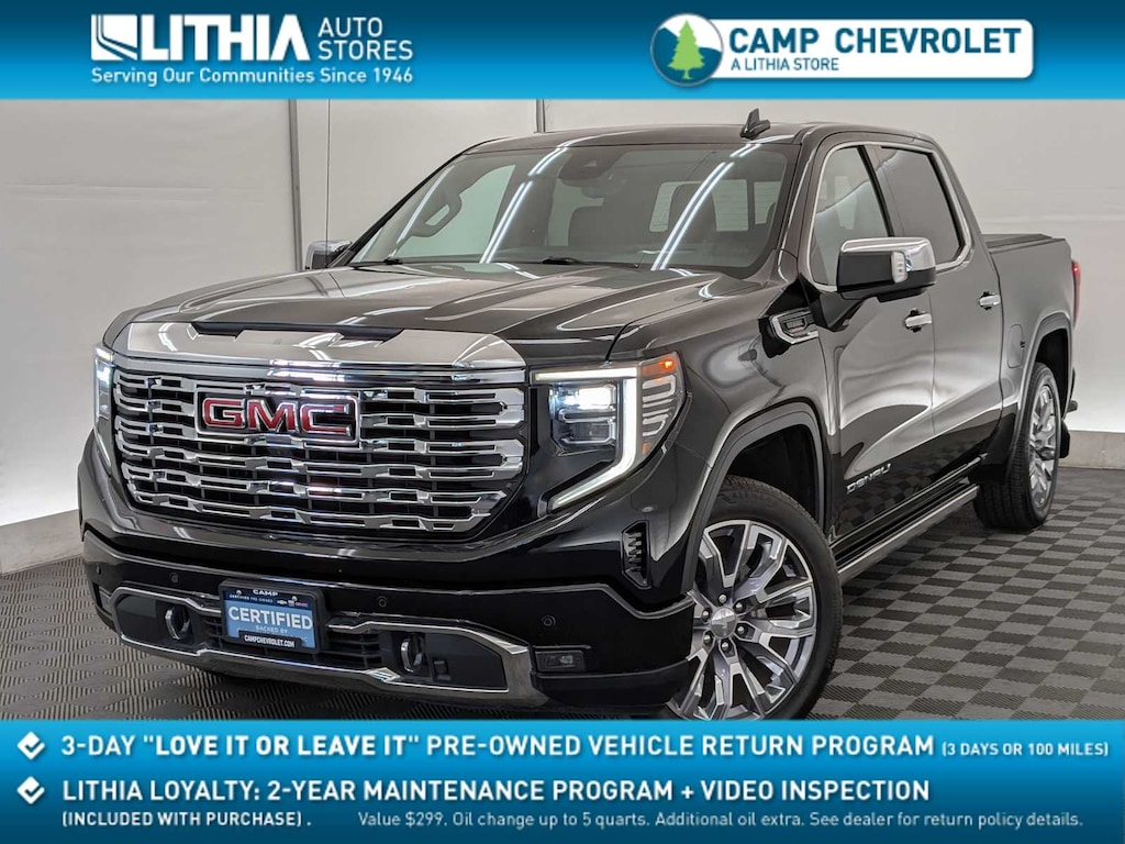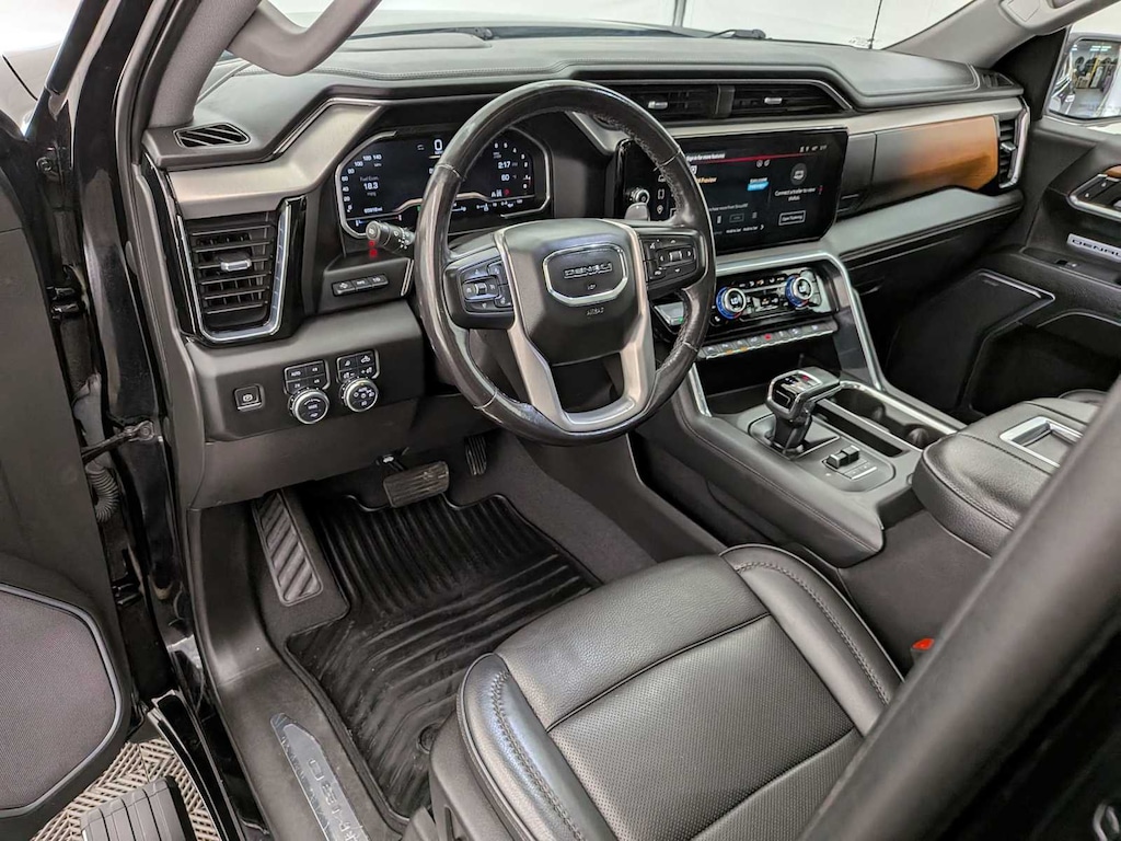 Onyx Black 2022 GMC Sierra 1500 Denali 4WD 10-Speed Automatic 3.0L I6 120-Volt Instrument Panel Power Outlet, 170 Amp Alternator, 2 Charge/Data USB Ports Inside Center Console, 2 Type-C Charge-Only Rear USB Ports, 2 USB Ports, Auto-Locking Rear Differential, Auxiliary External Transmission Oil Cooler, Bed View Camera, Chrome Header w/Signature Denali Chrome Grille, Chrome Recovery Hooks, Chrome Wheel To Wheel Assist Steps, Color-Keyed Carpeting Floor Covering, Compass, Deep-Tinted Glass, Electric Rear-Window Defogger, Electrical Steering Column Lock, Floor-Mounted Center Console, Front Rainsensing Wipers, GMC Connected Access Capable, HD Surround Vision, Heated 2nd Row Outboard Seats, Heated Driver & Front Outboard Passenger Seating, Heated Steering Wheel, Heavy-Duty Air Filter, Hill Descent Control, Hitch Guidance w/Hitch View, In-Vehicle Trailering App, Integrated Trailer Brake Controller, Keyless Open & Start, LED Cargo Area Lighting, OnStar & GMC Connected Services Capable, Perimeter Lighting, Power Door Locks, Power Front Passenger Windows w/Express Up/Down, Power Front Windows w/Driver Express Up/Down, Power Rake & Telescoping Steering Column, Power Rear Windows w/Express Down, Power Sliding Rear Window w/Rear Defogger, Preferred Equipment Group 5SA, Premium Bose 7-Speaker Sound System, Push Button Start, Rear Cross Traffic Braking, Rear Pedestrian Detection, Rear Wheelhouse Liners, Remote Vehicle Starter System, SiriusXM w/360L, Spray-On Pickup Bed Liner w/Denali Logo, Steering Wheel Audio Controls, Theft Deterrent System (Unauthorized Entry), Trailer Camera Provisions, Trailer Side Blind Zone Alert, Trailering Package, Ultrasonic Front & Rear Park Assist, Universal Home Remote, Ventilated Driver & Front Passenger Seats, Wi-Fi Hotspot Capable, Wireless Charging, Wireless Phone Projection.
