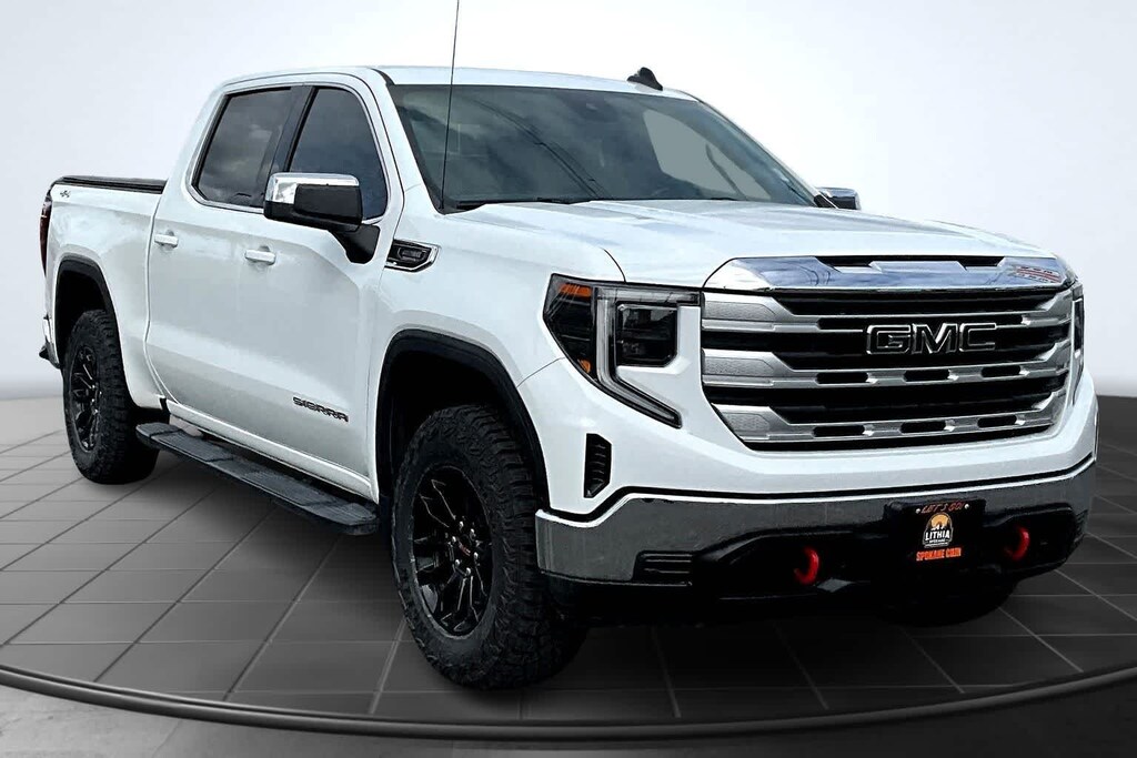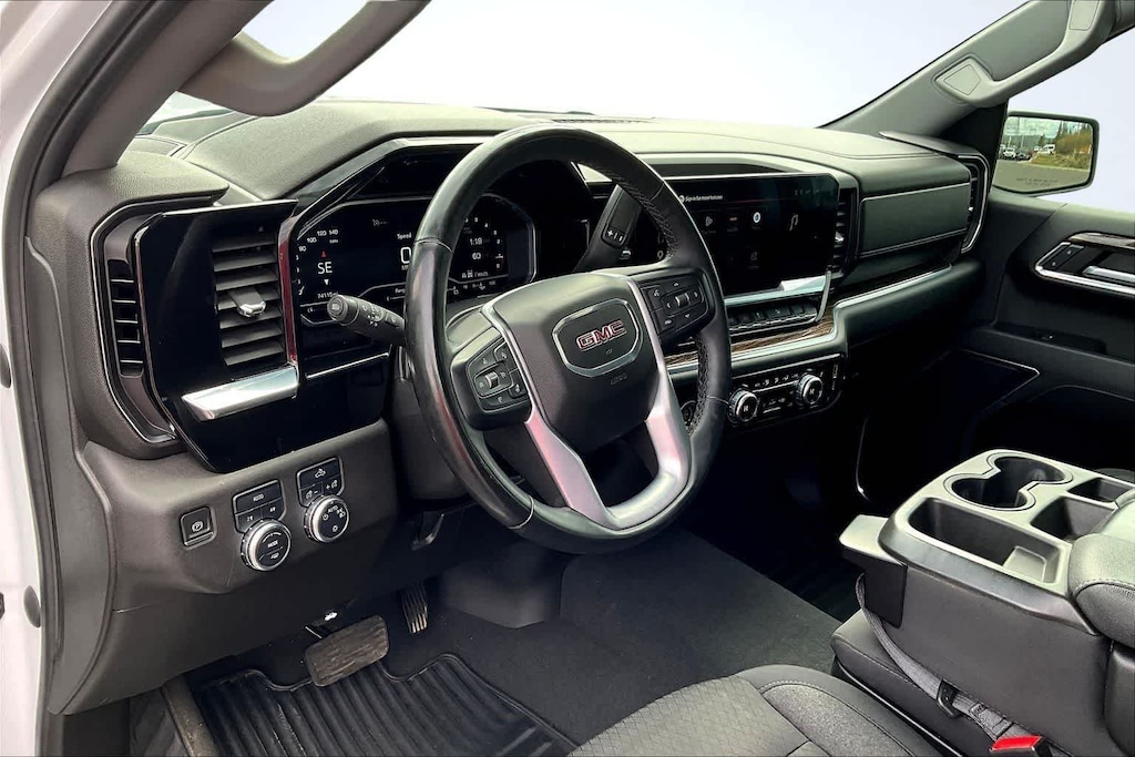 Summit White 2023 GMC Sierra 1500 SLE 4WD ?? powered by a 3.0L I6 paired with a smooth 10-speed automatic transmission, delivering confident performance whether youre on the jobsite or heading into weekend adventure across the Pacific Northwest. With 4WD capability, this Sierra is built to handle changing road conditions, gravel routes, and everything in between with ease.