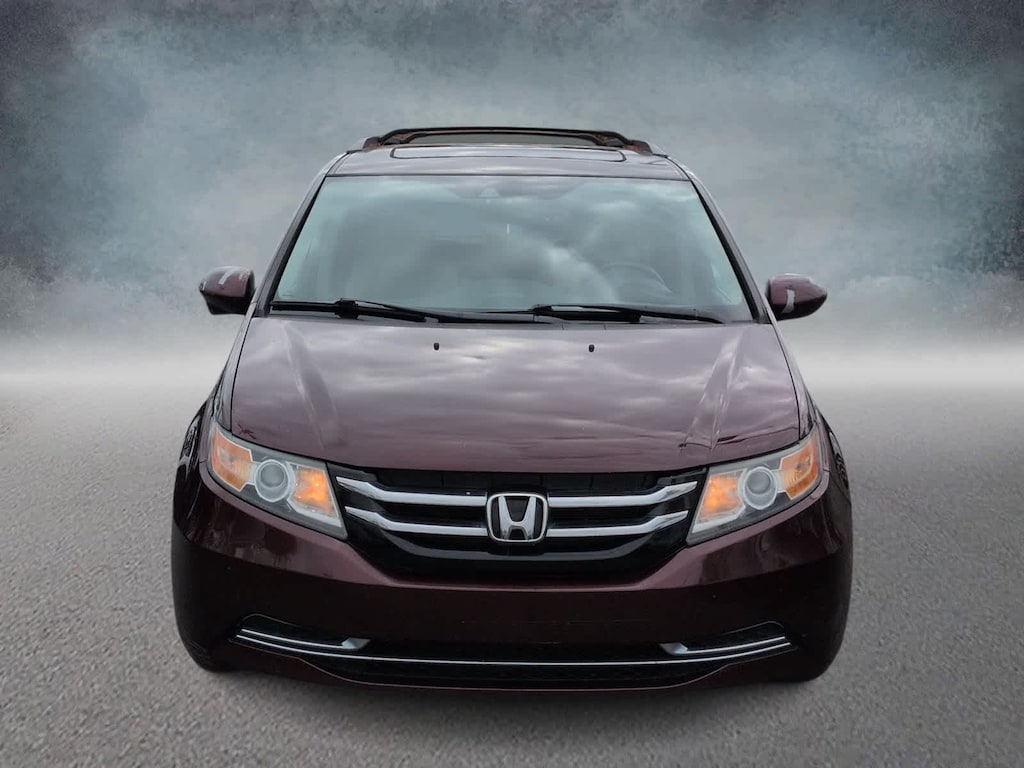 Clean CARFAX. Dark Cherry Pearl 2014 Honda Odyssey EX-L FWD 6-Speed Automatic 3.5L V6 SOHC i-VTEC 24V 17 x 7 Alloy Wheels, 3rd row seats: split-bench, 4-Wheel Disc Brakes, 4.25 Axle Ratio, 7 Speakers, ABS brakes, Air Conditioning, Alloy wheels, AM/FM radio: XM, Anti-whiplash front head restraints, Auto-dimming Rear-View mirror, Automatic temperature control, Brake assist, Bumpers: body-color, CD player, Delay-off headlights, Driver door bin, Driver vanity mirror, Drivers Seat Mounted Armrest, Dual front impact airbags, Dual front side impact airbags, Electronic Stability Control, Exterior Parking Camera Rear, Four wheel independent suspension, Front anti-roll bar, Front Bucket Seats, Front dual zone A/C, Front reading lights, Fully automatic headlights, Garage door transmitter: HomeLink, Heated door mirrors, Heated Front Bucket Seats, Heated front seats, Illuminated entry, Leather Seat Trim, Leather Shift Knob, Leather steering wheel, Low tire pressure warning, Occupant sensing airbag, Outside temperature display, Overhead airbag, Overhead console, Panic alarm, Passenger door bin, Passenger seat mounted armrest, Passenger vanity mirror, Power door mirrors, Power driver seat, Power Liftgate, Power moonroof, Power passenger seat, Power steering, Power windows, Radio data system, Rear air conditioning, Rear reading lights, Rear seat center armrest, Rear window defroster, Rear window wiper, Reclining 3rd row seat, Remote keyless entry, Security system, Speed control, Speed-sensing steering, Speed-Sensitive Wipers, Split folding rear seat, Spoiler, Steering wheel mounted audio controls, Tachometer, Telescoping steering wheel, Tilt steering wheel, Traction control, Trip computer, Variably intermittent wipers.