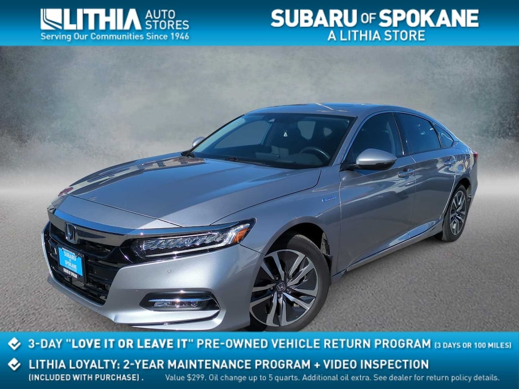 CARFAX One-Owner. Lunar Silver Metallic 2020 Honda Accord Hybrid Touring FWD eCVT 2.0L 4-Cylinder DOHC 16V i-VTEC 2.0L 4-Cylinder DOHC 16V i-VTEC, 10 Speakers, 17 Machine-Finished Alloy Wheels, 4-Wheel Disc Brakes, ABS brakes, Adaptive Cruise Control: Adaptive Cruise Control (ACC) with Low-Speed Follow, Adaptive suspension, Air Conditioning, Alloy wheels, AM/FM radio: SiriusXM, Apple CarPlay/Android Auto, Auto High-beam Headlights, Auto-dimming Rear-View mirror, Automatic temperature control, Blind Spot Information (BSI) System warning, Brake assist, Bumpers: body-color, Compass, Delay-off headlights, Driver door bin, Driver vanity mirror, Dual front impact airbags, Dual front side impact airbags, Electronic Stability Control, Emergency communication system: HondaLink, Exterior Parking Camera Rear, Forward collision: Collision Mitigation Braking System (CMBS) + FCW mitigation, Four wheel independent suspension, Front anti-roll bar, Front Bucket Seats, Front Center Armrest, Front dual zone A/C, Front fog lights, Front reading lights, Fully automatic headlights, Garage door transmitter: HomeLink, Heads-Up Display, Heated & Ventilated Front Bucket Seats, Heated door mirrors, Heated front seats, Heated rear seats, Illuminated entry, Knee airbag, Leather steering wheel, Leather-Trimmed Seats, Low tire pressure warning, Memory seat, Navigation System, Occupant sensing airbag, Outside temperature display, Overhead airbag, Overhead console, Panic alarm, Passenger door bin, Passenger vanity mirror, Power door mirrors, Power driver seat, Power moonroof, Power passenger seat, Power steering, Power windows, Radio data system, Radio: 450-Watt AM/FM/HD Premium Audio System, Rain sensing wipers, Rear anti-roll bar, Rear seat center armrest, Rear window defroster, Remote keyless entry, Security system, Speed control, Speed-sensing steering, Speed-Sensitive Wipers, Split folding rear seat, Steering wheel mounted audio controls, Telescoping steering wheel, Tilt steering wheel, Traction control, Trip computer, Turn signal indicator mirrors, Variably intermittent wipers, Ventilated front seats, 2.0L 4-Cylinder DOHC 16V i-VTEC.