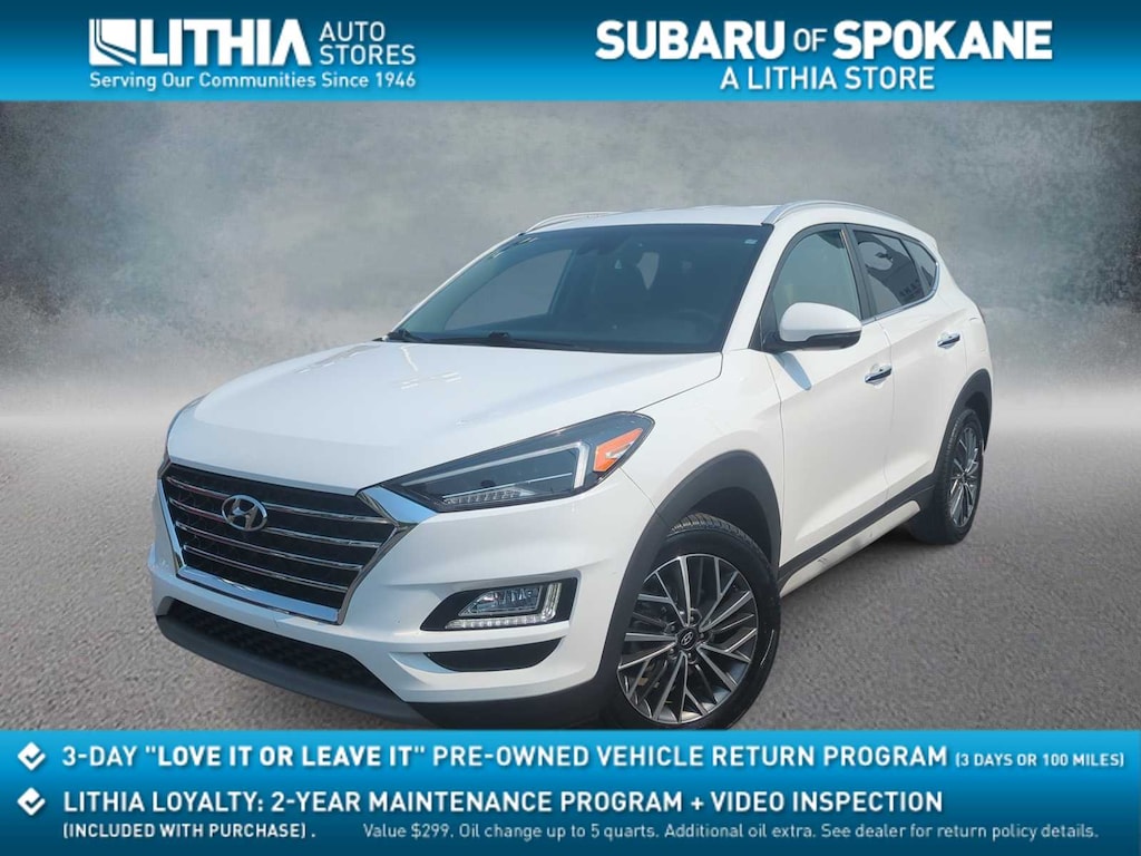 CARFAX One-Owner. Clean CARFAX. Dazzling White 2019 Hyundai Tucson Limited AWD 6-Speed Automatic with Shiftronic 2.4L I4 DGI DOHC 16V AWD, 18 x 7.0J Alloy Wheels, 4-Wheel Disc Brakes, 8 Speakers, ABS brakes, Air Conditioning, Alloy wheels, AM/FM radio: SiriusXM, Apple CarPlay & Android Auto, Auto-dimming Rear-View mirror, Automatic temperature control, Axle Ratio: 3.195, Brake assist, Bumpers: body-color, Cargo Net, Cargo Package, Carpeted Floor Mats, Delay-off headlights, Driver door bin, Driver vanity mirror, Dual front impact airbags, Dual front side impact airbags, Electronic Stability Control, Emergency communication system: Blue Link, Exterior Parking Camera Rear, First Aid Kit, Four wheel independent suspension, Front anti-roll bar, Front Bucket Seats, Front Center Armrest, Front dual zone A/C, Front fog lights, Front reading lights, Fully automatic headlights, Garage door transmitter: HomeLink, Heated door mirrors, Heated Front Bucket Seats, Heated front seats, Heated steering wheel, Illuminated entry, Leather Seat Trim, Leather Shift Knob, Low tire pressure warning, Occupant sensing airbag, Outside temperature display, Overhead airbag, Overhead console, Panic alarm, Passenger door bin, Passenger vanity mirror, Power door mirrors, Power driver seat, Power Liftgate, Power passenger seat, Power steering, Power windows, Radio: Infinity Audio System, Rear anti-roll bar, Rear Bumper Applique, Rear seat center armrest, Rear window defroster, Rear window wiper, Remote keyless entry, Reversible Cargo Tray, Roof rack: rails only, Security system, Speed control, Speed-sensing steering, Split folding rear seat, Spoiler, Steering wheel mounted audio controls, Tachometer, Telescoping steering wheel, Tilt steering wheel, Traction control, Trip computer, Turn signal indicator mirrors, Variably intermittent wipers, AWD.