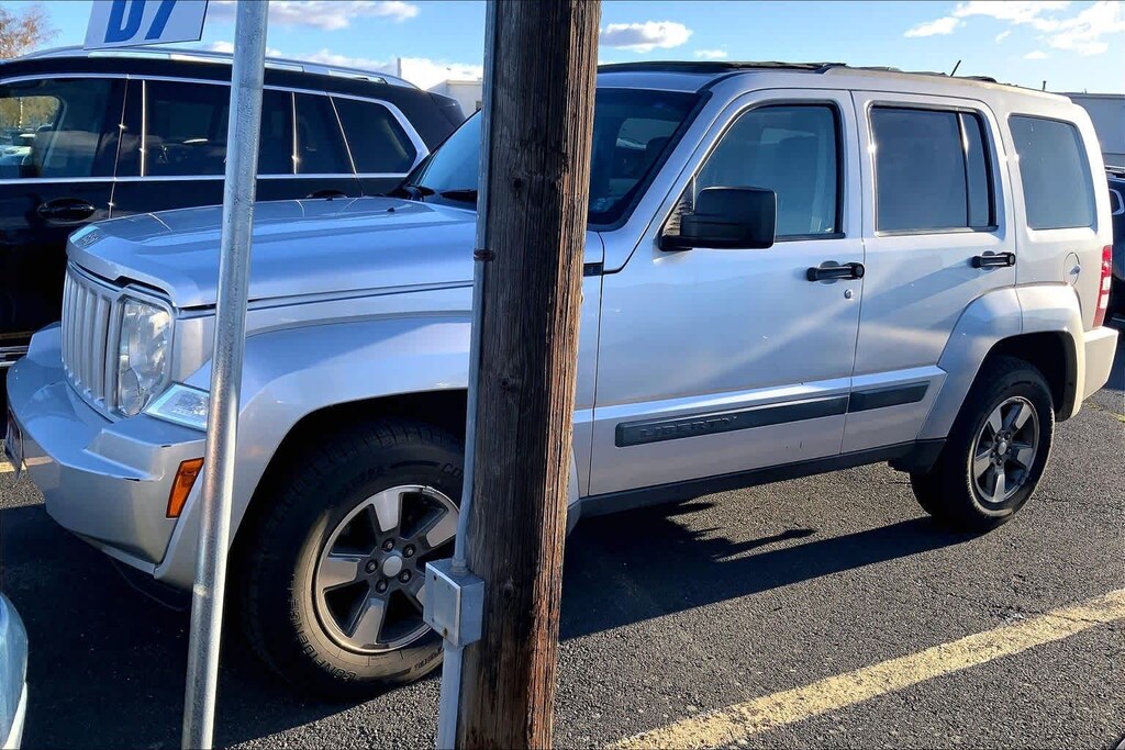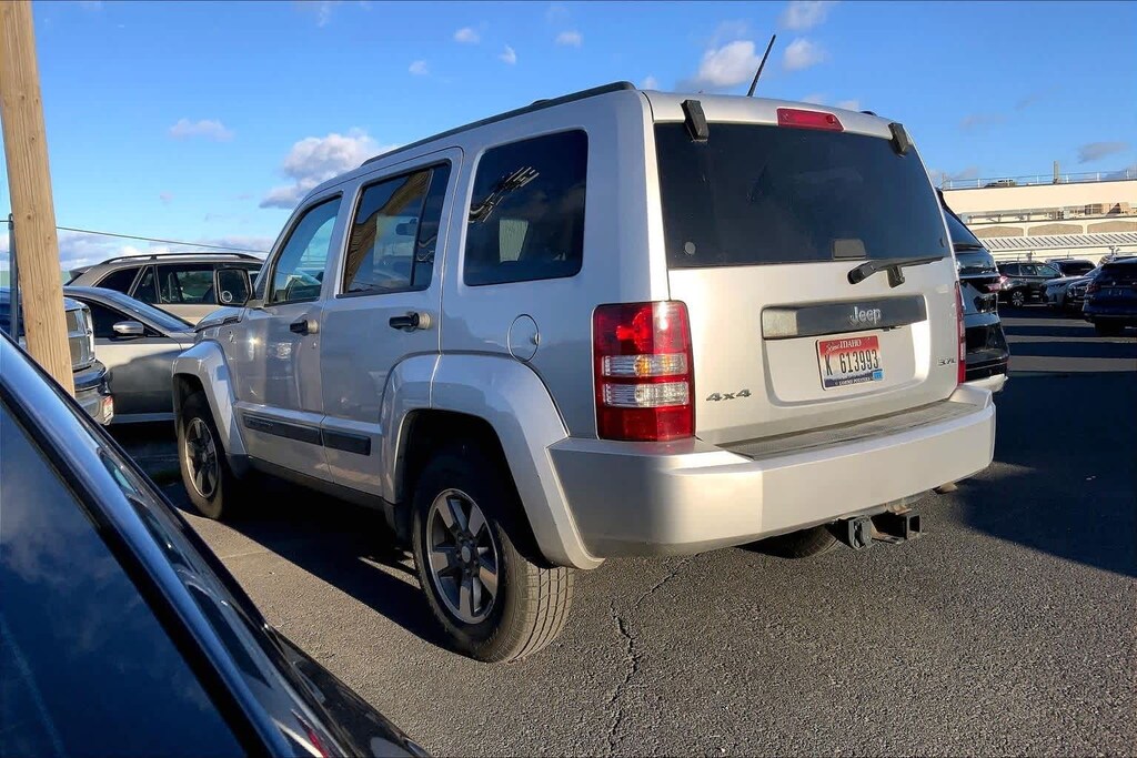 Clean CARFAX. Bright Silver Metallic Clearcoat 2008 Jeep Liberty Sport 4WD 4-Speed Automatic VLP PowerTech 3.7L V6 4WD, 115V Auxiliary Power Outlet, 16 x 7.0 Aluminum Wheels, 3.21 Axle Ratio, 4-Wheel Disc Brakes, 7 Pin Wiring Harness, 7 to 4 Pin Wiring Adapter, ABS brakes, Air Conditioning, Alloy wheels, AM/FM CD/MP3 Radio, AM/FM radio: SIRIUS, Bodyside moldings, Brake assist, Bumpers: body-color, Cargo Compartment Cover, CD player, Class III Receiver Hitch, Class III Trailer Towing Group, Cloth Low-Back Bucket Seats, Deep Tint Sunscreen Glass, Delay-off headlights, Driver door bin, Driver vanity mirror, Dual front impact airbags, Electronic Stability Control, Fog Lamps, Front anti-roll bar, Front Bucket Seats, Front Center Armrest, Front Passenger Forward Fold Flat Seat, Front reading lights, Front wheel independent suspension, Illuminated entry, Low tire pressure warning, Occupant sensing airbag, Overhead airbag, Panic alarm, Passenger door bin, Passenger vanity mirror, Popular Equipment Group, Power door mirrors, Power steering, Power windows, Quick Order Package 28B, Radio data system, Rear anti-roll bar, Rear reading lights, Rear window defroster, Rear window wiper, Remote keyless entry, Roof rack: rails only, Side Roof Rails, Sky Slider Full Open Roof, Speed Control, Split folding rear seat, Tachometer, Temperature & Compass Gauge, Tilt steering wheel, Traction control, Trailer Sway Control, Variably intermittent wipers, 4WD.