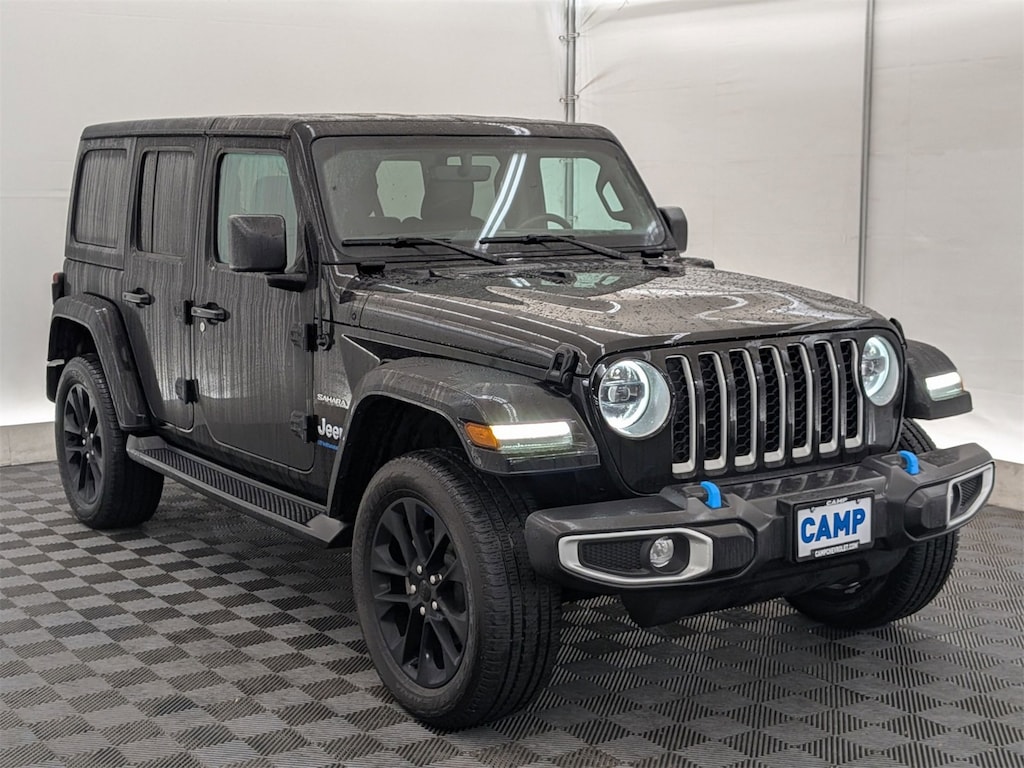 Black Clearcoat 2023 Jeep Wrangler Sahara 4xe Premium Hybrid Power for the PNW