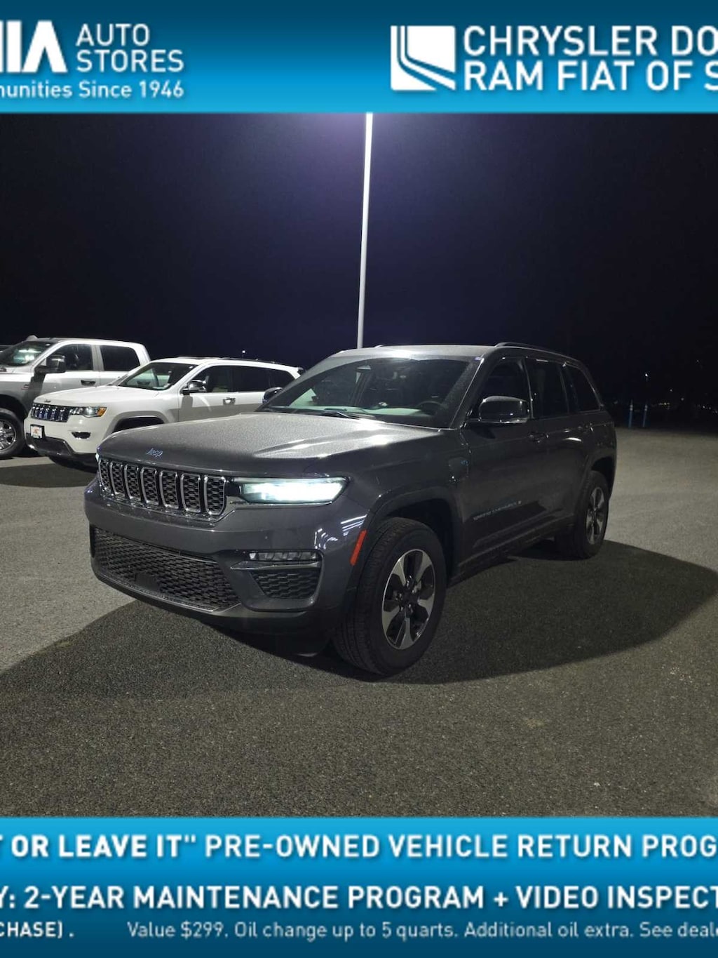 TRANSMISSION: 8-SPEED AUTOMATIC 8P75PH PHEV (STD), ENGINE: 2.0L I4 DOHC DI TURBO PHEV (STD). Jeep Grand Cherokee 4xe with Baltic Gray Metallic Clearcoat exterior and Global Black interior features a 4 Cylinder Engine with 375 HP at 5250 RPM*.