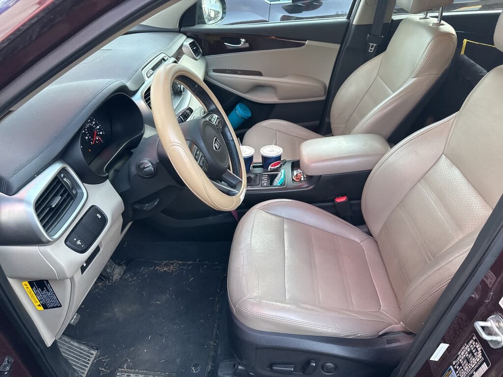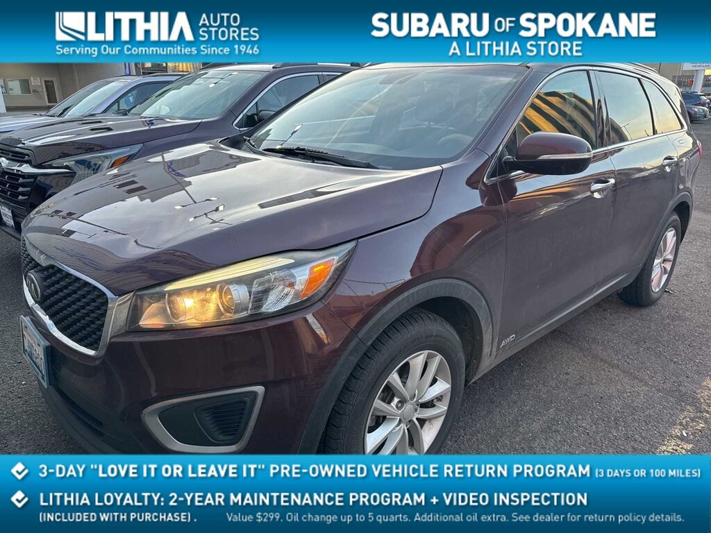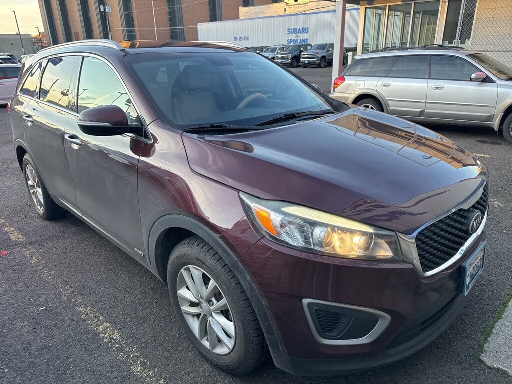 Sangria 2017 Kia Sorento LX AWD 6-Speed Automatic with Sportmatic 2.4L DOHC AWD, 3.648 Axle Ratio, 3rd Row A/C, 4-Wheel Disc Brakes, 6 Speakers, ABS brakes, Air Conditioning, Alloy wheels, AM/FM radio: SiriusXM, Anti-whiplash front head restraints, Auto Headlamp Control, Auto-Dimming Rear-View Mirror, Brake assist, Bumpers: body-color, Cargo Tray (7 Seat), Carpet Floor Mats (7 Seat), CD player, Delay-off headlights, Driver door bin, Driver vanity mirror, Dual front impact airbags, Dual front side impact airbags, Dual Zone Automatic HVAC, Electronic Stability Control, Exterior Parking Camera Rear, Four wheel independent suspension, Front anti-roll bar, Front Bucket Seats, Front Center Armrest, Front reading lights, Heated door mirrors, Heated Front Bucket Seats, Illuminated Door Pockets, Illuminated entry, Leather Seat Trim, Leather Wrapped Steering Wheel & Gear Shift Knob, Low tire pressure warning, LX 3rd Row Seat, LX Convenience Package, LX Essential Premium Package, Occupant sensing airbag, Outside temperature display, Overhead airbag, Overhead console, Panic alarm, Passenger door bin, Passenger vanity mirror, Power door mirrors, Power steering, Power windows, Radio: AM/FM/CD/MP3/SiriusXM, Radio: AM/FM/MP3/SiriusXM, Rear anti-roll bar, Rear Backup Park Assist, Rear seat center armrest, Rear window defroster, Rear window wiper, Remote keyless entry, Roof rack: rails only, Security system, Shark Fin Antenna, Smart Key w/Push Button Start, Speed control, Speed-sensing steering, Split folding rear seat, Spoiler, Steering wheel mounted audio controls, Tachometer, Telescoping steering wheel, Tilt steering wheel, Traction control, Trip computer, Turn signal indicator mirrors, Variably intermittent wipers, Wheel Locks, Wheels: 17 x 7.0 Alloy, YES Essentials Cloth Seat Trim, AWD.