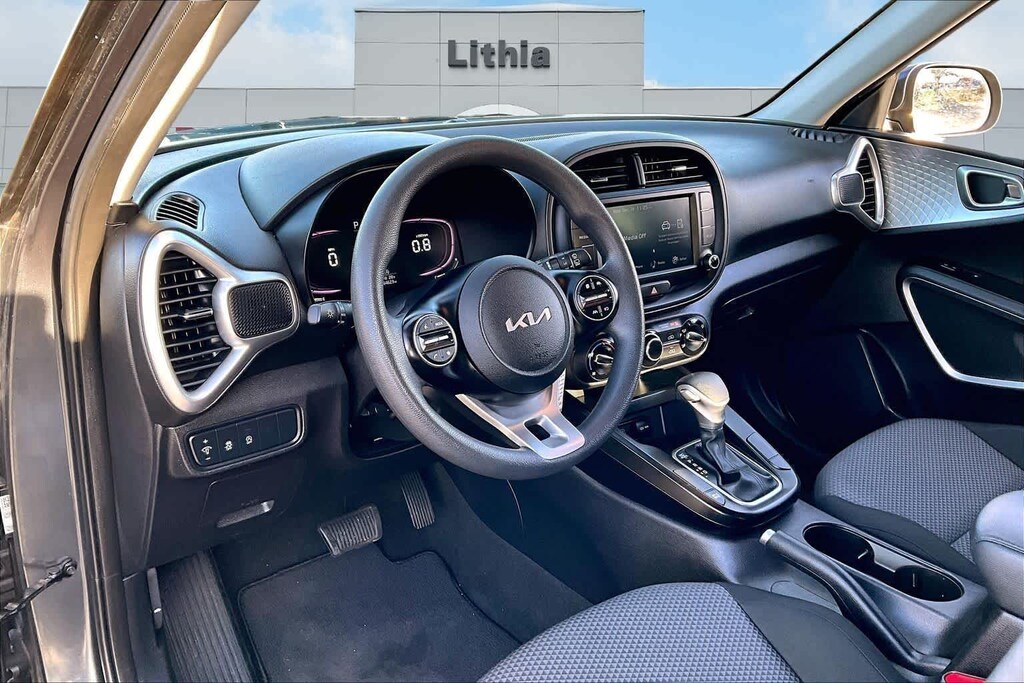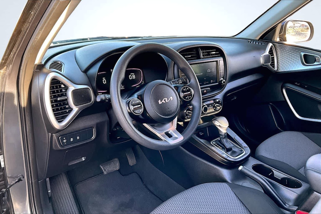 Features include fully automatic headlights, steering wheel-mounted audio controls, electronic stability control, traction control, and an exterior rearview camera for added safety and convenience. Its practical design and nimble handling make the Soul LX a standout in its class.