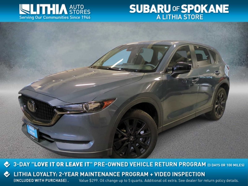 Clean CARFAX. Polymetal Gray 2021 Mazda CX-5 Carbon Edition AWD 6-Speed Automatic SKYACTIVî 2.5L 4-Cylinder DOHC 16V 10 Speakers, 4-Wheel Disc Brakes, 4.624 Axle Ratio, ABS brakes, Air Conditioning, Alloy wheels, AM/FM radio, AppLink/Apple CarPlay and Android Auto, Auto High-beam Headlights, Auto-dimming Rear-View mirror, Automatic temperature control, Black Lug Nuts & Black Wheel Locks, Bose 10-Speaker Premium Audio Sound System, Brake assist, Bumpers: body-color, Delay-off headlights, Driver door bin, Driver vanity mirror, Dual front impact airbags, Dual front side impact airbags, Electronic Stability Control, Emergency communication system: MAZDA CONNECT, Exterior Parking Camera Rear, Four wheel independent suspension, Front anti-roll bar, Front Bucket Seats, Front Center Armrest, Front dual zone A/C, Front reading lights, Fully automatic headlights, Garage door transmitter: HomeLink, Heated Front Bucket Seats, Heated front seats, Illuminated entry, Leather Seat Trim, Leather Shift Knob, Low tire pressure warning, Memory seat, Occupant sensing airbag, Outside temperature display, Overhead airbag, Overhead console, Panic alarm, Passenger door bin, Passenger vanity mirror, Power door mirrors, Power driver seat, Power Liftgate, Power moonroof, Power passenger seat, Power steering, Power windows, Radio data system, Radio: AM/FM/HD Audio System, Rain sensing wipers, Rear anti-roll bar, Rear reading lights, Rear seat center armrest, Rear window defroster, Rear window wiper, Remote keyless entry, Speed control, Speed-sensing steering, Split folding rear seat, Spoiler, Steering wheel mounted audio controls, Tachometer, Telescoping steering wheel, Tilt steering wheel, Traction control, Trip computer, Turn signal indicator mirrors, Variably intermittent wipers, Wheels: 19 x 7J Aluminum Alloy.