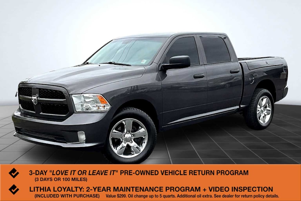 The Express trim delivers a clean, body-color exterior design with matching grille, front fascia, and rear bumper for a sleek, monochromatic look. Riding on 20 aluminum chrome-clad wheels, it combines a sporty appearance with the rugged utility expected from a Ram truck.