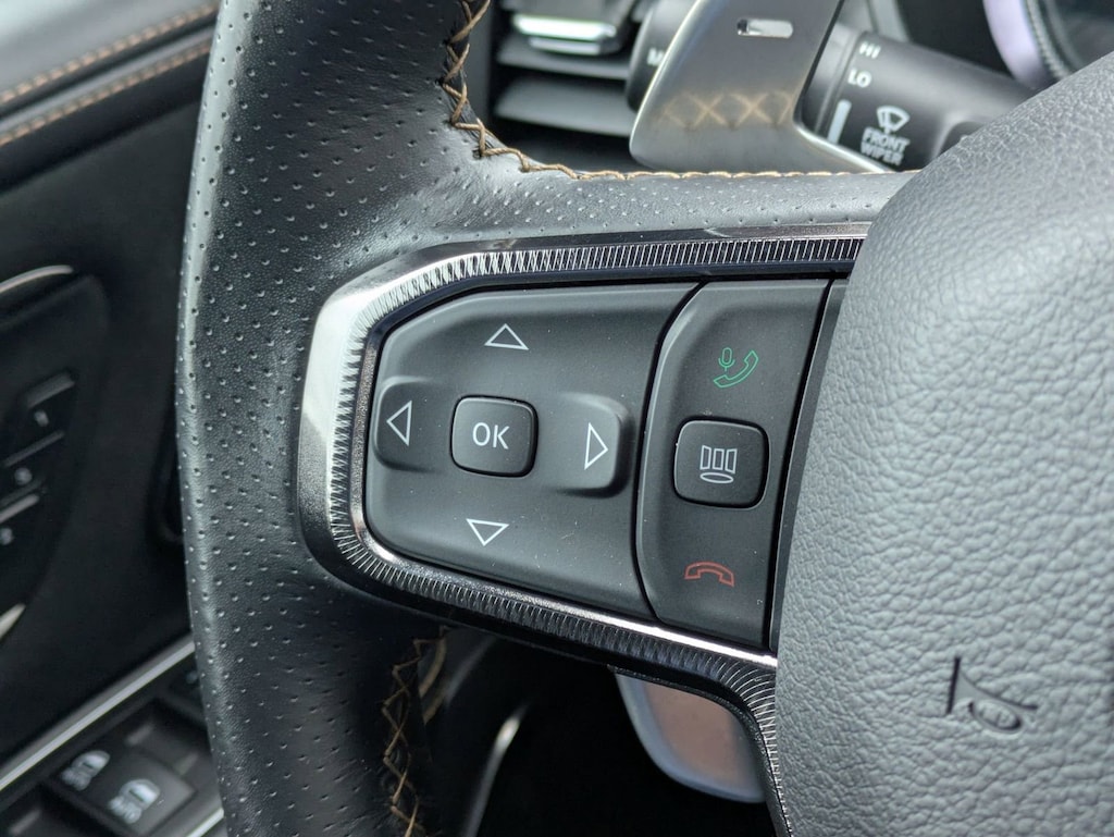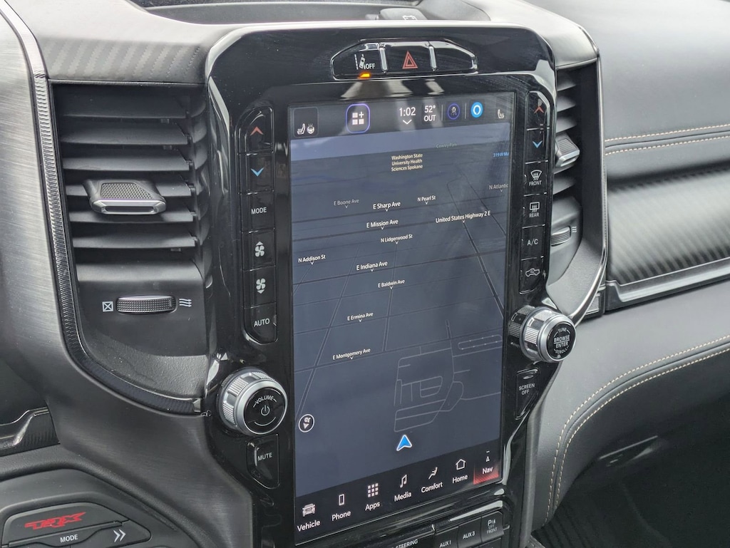 Inside, the TRX delivers a premium, performance-focused cabin with leather and suede-trimmed bucket seats, ventilated front and rear seating, heated steering wheel, and extensive memory settings for driver personalization. Carbon fiber accents, ambient lighting, and a full-length premium console elevate the interior experience.