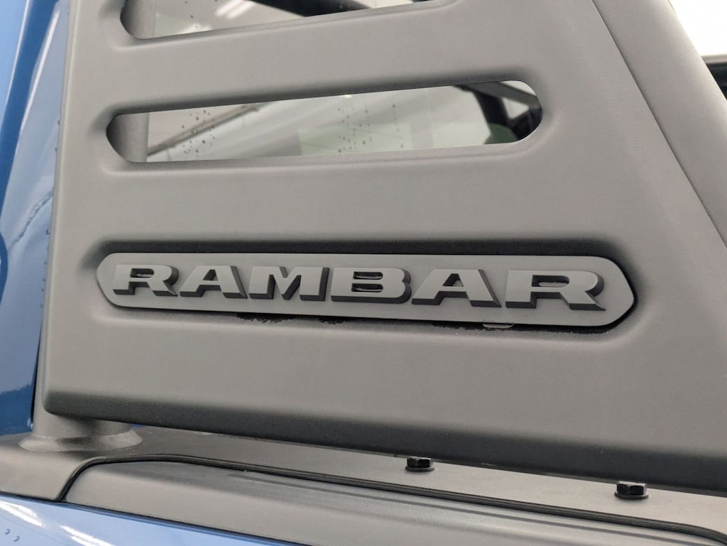 The exterior is equally aggressive and functional, featuring bead-lock capable wheels, Mopar upgrades including spray-in bedliner, deployable bed step, hood graphics, and LED lighting accents that reinforce its purpose-built performance identity.