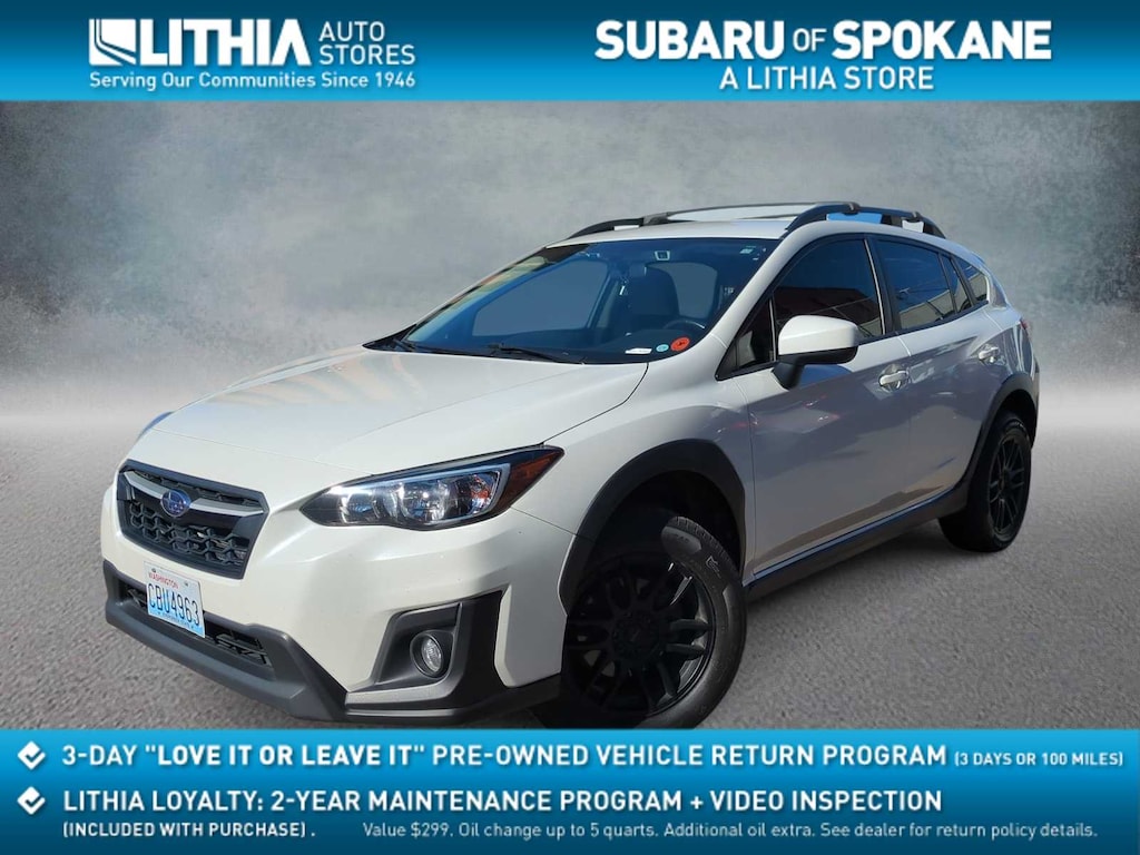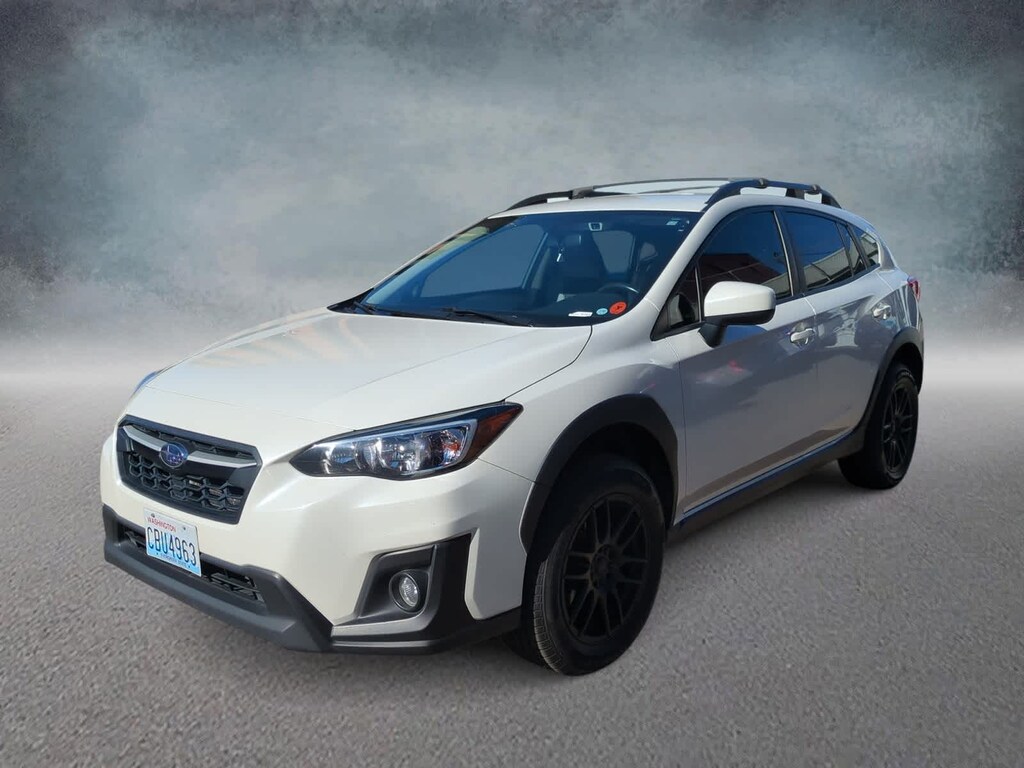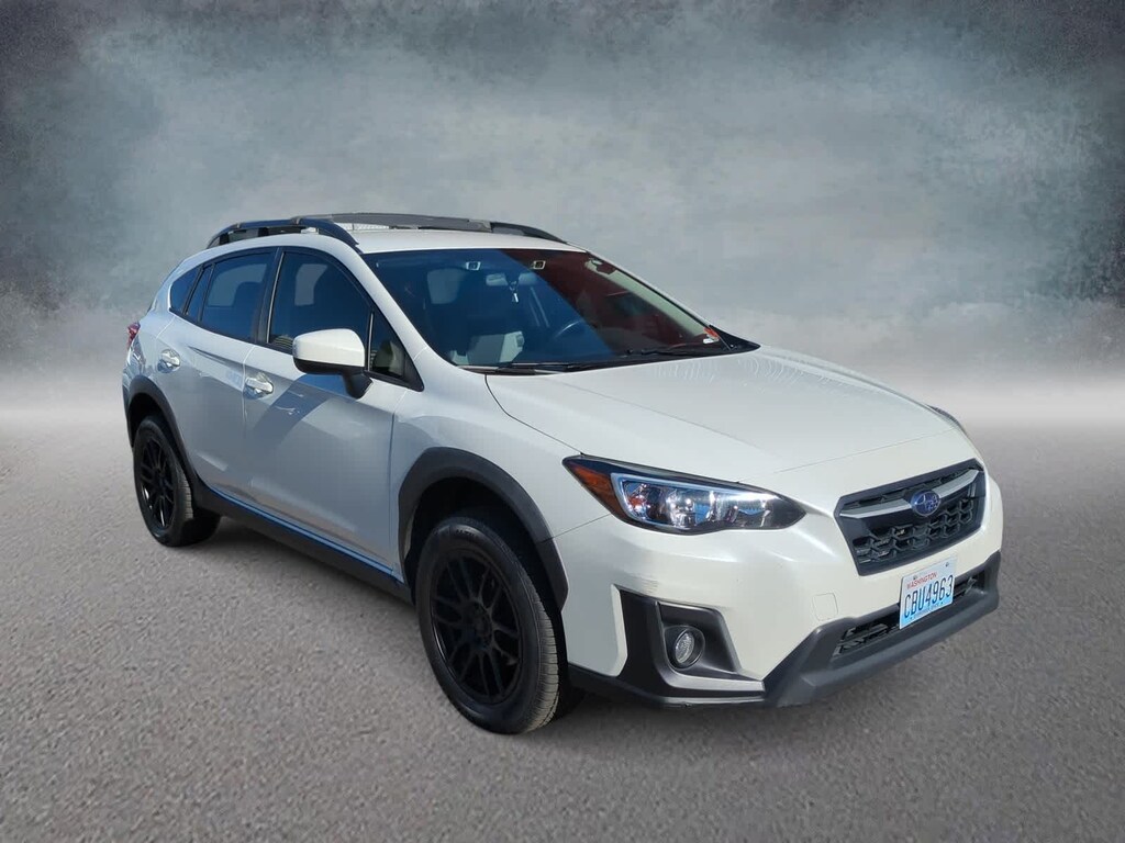 Crystal White Pearl 2018 Subaru Crosstrek 2.0i Premium AWD Lineartronic CVT 2.0L 16V DOHC 17 x 7.0J Aluminum Alloy Wheels, 3.90 Axle Ratio, 4-Wheel Disc Brakes, 6 Speakers, ABS brakes, Adaptive Cruise Control, Air Conditioning, Alloy wheels, AM/FM radio, Apple CarPlay/Android Auto, Blind Spot Detection/Rear Cross Traffic Alert, Brake assist, Bumpers: body-color, Charge-Coupled Device Cameras, Cloth Upholstery, Driver door bin, Driver vanity mirror, Dual front impact airbags, Dual front side impact airbags, Electronic Stability Control, Emergency communication system: STARLINK, Exterior Parking Camera Rear, EyeSight System, Four wheel independent suspension, Front anti-roll bar, Front Bucket Seats, Front Center Armrest, Front fog lights, Front reading lights, Fully automatic headlights, Heated door mirrors, Heated Front Bucket Seats, Heated front seats, Illuminated entry, Knee airbag, Lane Keep Assist, Leather Shift Knob, Low tire pressure warning, Occupant sensing airbag, Outside temperature display, Overhead airbag, Overhead console, Panic alarm, Passenger door bin, Passenger vanity mirror, Power door mirrors, Power steering, Power windows, Pre-Collision Brake Assist, Pre-Collision Braking System, Pre-Collision Following Distance Warning, Radio data system, Radio: Subaru Starlink 6.5 Multimedia System, Rear anti-roll bar, Rear window defroster, Rear window wiper, Remote keyless entry, Roof rack: rails only, Security system, Speed control, Speed-sensing steering, Split folding rear seat, Spoiler, Steering Responsive Fog Lights, Steering wheel mounted audio controls, Subaru Starlink Smartphone Integration, Tachometer, Telescoping steering wheel, Tilt steering wheel, Traction control, Trip computer, Variably intermittent wipers.