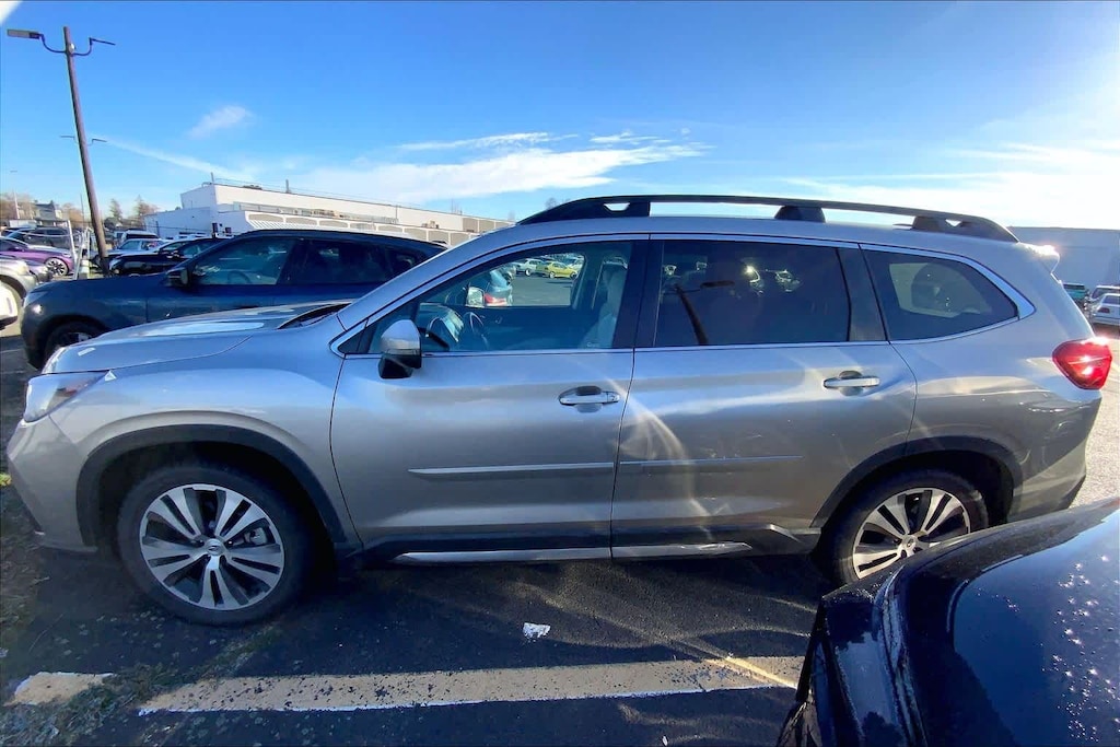 Clean CARFAX. Tungsten Metallic 2020 Subaru Ascent Limited AWD Lineartronic CVT 2.4L DOHC 3rd row seats: bench, 4-Wheel Disc Brakes, 6 Speakers, ABS brakes, Air Conditioning, All-Weather Floor Liners, Alloy wheels, AM/FM radio: SiriusXM, Auto High-beam Headlights, Auto-Dimming Exterior Mirror w/Approach Light, Auto-dimming Rear-View mirror, Automatic temperature control, Axle Ratio: 4.44, Brake assist, Bumpers: body-color, Cargo Area Cover, Cargo Tray, CD player, Compass, Delay-off headlights, Driver door bin, Driver vanity mirror, Dual front impact airbags, Dual front side impact airbags, Dual Glass Panoramic Power Moonroof, Electronic Stability Control, Emergency communication system: STARLINK Safety and Security (Subscription Required), Exterior Parking Camera Rear, Four wheel independent suspension, Front anti-roll bar, Front Bucket Seats, Front Center Armrest, Front dual zone A/C, Front fog lights, Front reading lights, Fully automatic headlights, Garage door transmitter: HomeLink, Heated door mirrors, Heated Front Bucket Seats, Heated front seats, Heated rear seats, Heated steering wheel, Illuminated entry, Knee airbag, Low tire pressure warning, Map & Reading Lights LED Upgrade - 6 Bulb Kit, Memory seat, Occupant sensing airbag, Outside temperature display, Overhead airbag, Overhead console, Panic alarm, Passenger door bin, Passenger vanity mirror, Perforated Leather-Trimmed Upholstery, Popular Package #2A, Power door mirrors, Power driver seat, Power Liftgate, Power passenger seat, Power steering, Power windows, Radio data system, Radio: Subaru STARLINK 8.0 Multimedia Nav System, Radio: Subaru STARLINK 8.0 Multimedia Plus System, Rear air conditioning, Rear anti-roll bar, Rear Bumper Cover, Rear reading lights, Rear Seatback Protector, Rear window defroster, Rear window wiper, Reclining 3rd row seat, Remote keyless entry, Security system, Speed control, Splash Guards, Split folding rear seat, Spoiler, STARLINK/Apple CarPlay/Android Auto, Steering wheel mounted audio controls, Tachometer, Technology Package, Telescoping steering wheel, Tilt steering wheel, Traction control, Trip computer, Turn signal indicator mirrors, Variably intermittent wipers, Wheels: 20 Dk Gray Aluminum Alloy w/Machine Finish.