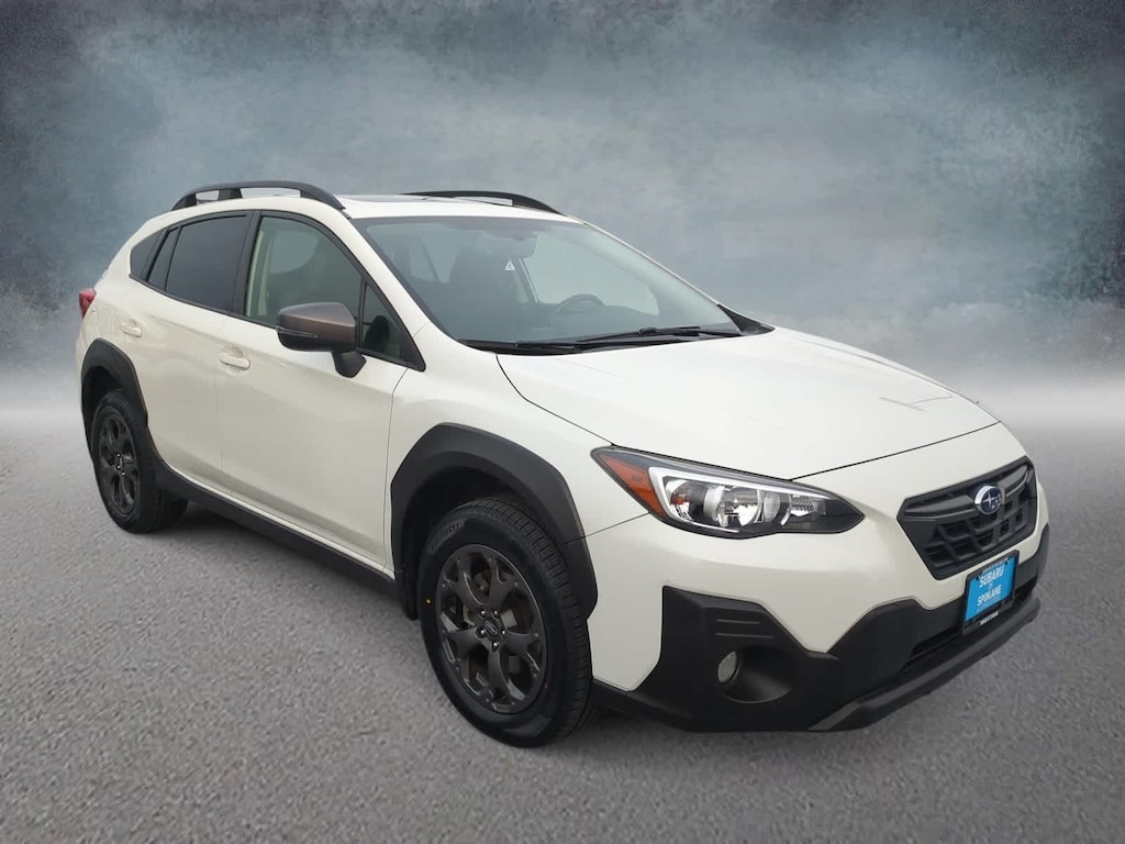 Clean CARFAX. Crystal White Pearl 2021 Subaru Crosstrek Sport AWD Lineartronic CVT 2.5L DOHC 3.70 Axle Ratio, 4-Wheel Disc Brakes, 6 Speakers, ABS brakes, Air Conditioning, All-Weather Floor Liners, Alloy wheels, AM/FM radio: SiriusXM, Anti-whiplash front head restraints, Auto-Dimming Mirror w/Compass & HomeLink, Automatic temperature control, Blind Spot Detection (BSD), Brake assist, Bumpers: body-color, CD player, Driver door bin, Driver vanity mirror, Dual front impact airbags, Dual front side impact airbags, Electronic Stability Control, Emergency communication system: STARLINK Safety and Security (Subscription Required), Exterior Parking Camera Rear, Four wheel independent suspension, Front anti-roll bar, Front Bucket Seats, Front Center Armrest, Front fog lights, Front reading lights, Fully automatic headlights, Heated door mirrors, Heated Front Bucket Seats, Heated front seats, Illuminated entry, Knee airbag, Leather Shift Knob, Low tire pressure warning, Moonroof Package, Occupant sensing airbag, Outside temperature display, Overhead airbag, Overhead console, Panic alarm, Passenger door bin, Passenger vanity mirror, Popular Package #2B, Power door mirrors, Power Moonroof, Power steering, Power windows, Radio data system, Radio: Subaru STARLINK 6.5 Multimedia Plus System, Radio: Subaru STARLINK 8.0 Multimedia Plus System, Rear anti-roll bar, Rear Bumper Cover, Rear Seatback Protector, Rear window defroster, Rear window wiper, Remote keyless entry, Security system, Speed control, Speed-sensing steering, Splash Guards, Split folding rear seat, Spoiler, STARLINK/Apple CarPlay/Android Auto, StarTex Upholstery, Steering wheel mounted audio controls, Subaru STARLINK Smartphone Integration, Tachometer, Telescoping steering wheel, Tilt steering wheel, Traction control, Trip computer, Turn signal indicator mirrors, Variably intermittent wipers, Wheels: 17 Alloy Dark Gray Finish Sport Type.