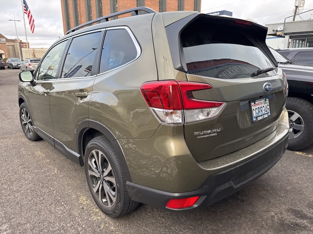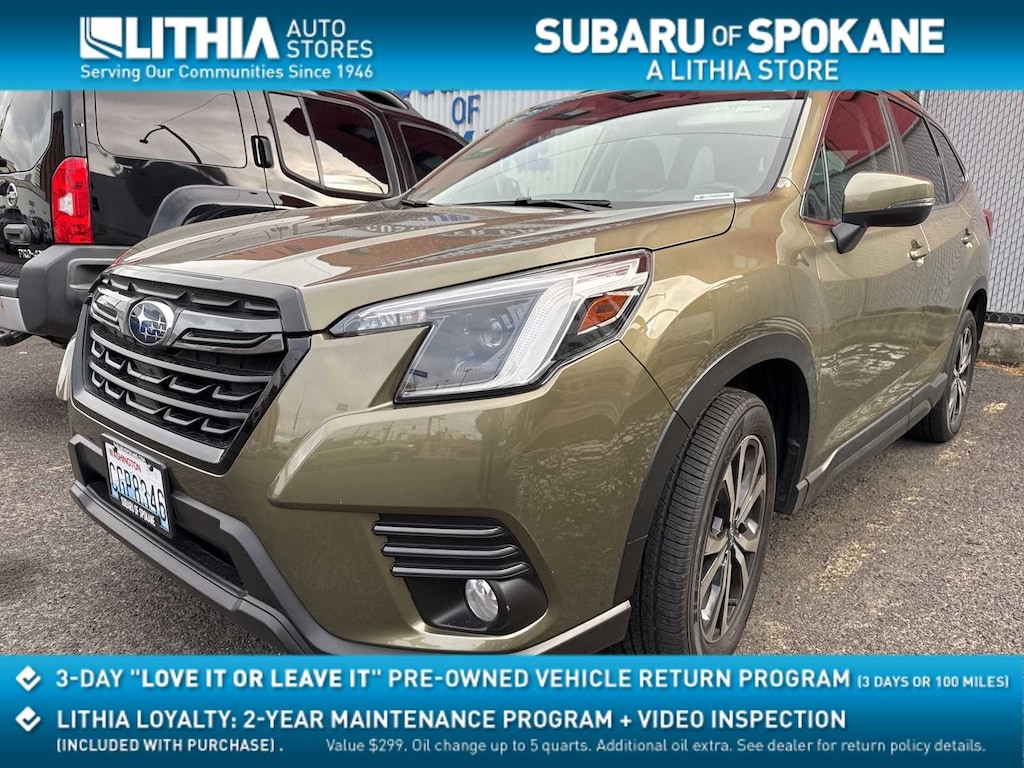 Clean CARFAX. Autumn Green Metallic 2023 Subaru Forester Limited AWD Lineartronic CVT 2.5L 4-Cylinder DOHC 16V 3.70 Axle Ratio, 4-Wheel Disc Brakes, 6 Speakers, ABS brakes, Air Conditioning, Alloy wheels, AM/FM radio: SiriusXM, Anti-whiplash front head restraints, Auto High-beam Headlights, Auto-Dimming Mirror w/Compass & HomeLink, Automatic temperature control, Brake assist, Bumpers: body-color, Cargo Net, CD player, Driver door bin, Driver vanity mirror, Dual front impact airbags, Dual front side impact airbags, Electronic Stability Control, Emergency communication system: STARLINK Safety and Security (Subscription Required), Exterior Parking Camera Rear, Four wheel independent suspension, Front anti-roll bar, Front Bucket Seats, Front Center Armrest, Front dual zone A/C, Front fog lights, Front reading lights, Fully automatic headlights, harman/kardon 9-Speaker Audio System, Heated door mirrors, Heated Front Bucket Seats, Heated front seats, Heated Steering Wheel, Illuminated entry, Knee airbag, Leather Shift Knob, Low tire pressure warning, Nav & harman/kardon & RAB & Heated Steering Wheel, Navigation System, Occupant sensing airbag, Outside temperature display, Overhead airbag, Overhead console, Panic alarm, Passenger door bin, Passenger vanity mirror, Perforated Leather-Trimmed Upholstery, Power door mirrors, Power driver seat, Power Liftgate, Power moonroof: Panoramic, Power steering, Power windows, Radio data system, Radio: Subaru Starlink 8.0 Multimedia Nav System, Radio: Subaru Starlink 8.0 Multimedia Plus System, Rear anti-roll bar, Rear seat center armrest, Rear window defroster, Rear window wiper, Remote keyless entry, Reverse Automatic Braking System (RAB), Roof rack: rails only, Security system, Speed control, Speed-sensing steering, Split folding rear seat, Spoiler, STARLINK/Apple CarPlay/Android Auto, Steering wheel mounted audio controls, Sunshade - Windshield, Tachometer, Telescoping steering wheel, Tilt steering wheel, Traction control, Trip computer, Turn signal indicator mirrors, Variably intermittent wipers, Wheels: 18 x 7.0 J Black Machine Finish Alloy.