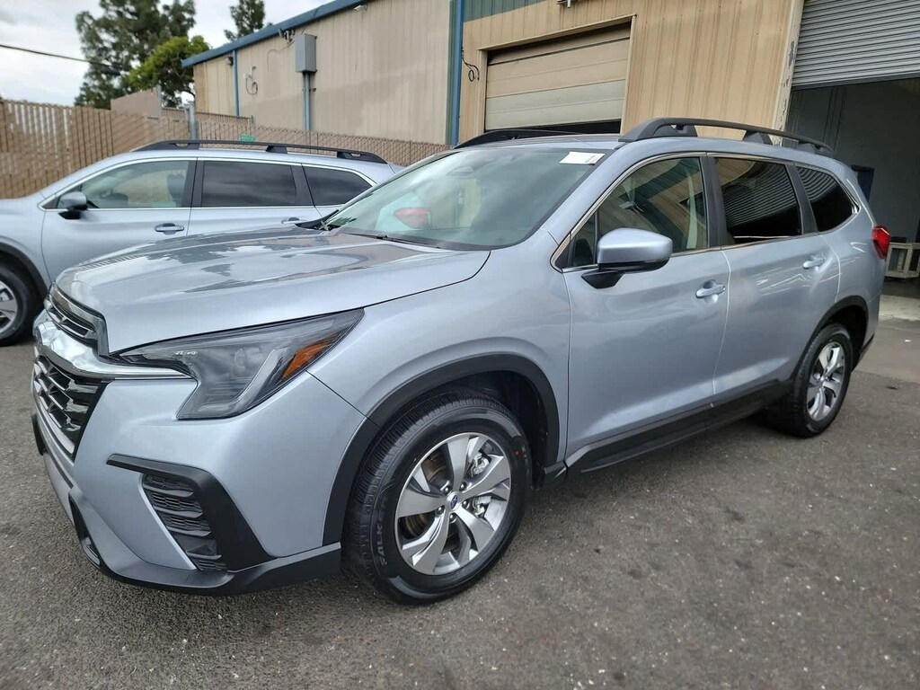 Clean CARFAX. Ice Silver Metallic 2024 Subaru Ascent Premium AWD Lineartronic CVT 2.4L 4-Cylinder DOHC 16V 3rd row seats: bench, 4-Wheel Disc Brakes, 6 Speakers, ABS brakes, Air Conditioning, Alloy wheels, AM/FM radio: SiriusXM, Auto High-beam Headlights, Auto-Dimming Rear View Compass Mirror w/HomeLink, Automatic temperature control, Axle Ratio: 4.44, Brake assist, Bumpers: body-color, Convenience Package, Delay-off headlights, Driver door bin, Driver vanity mirror, Dual front impact airbags, Dual front side impact airbags, Electronic Stability Control, Emergency communication system: STARLINK Safety and Security (Subscription Required), Exterior Parking Camera Rear, Four wheel independent suspension, Front anti-roll bar, Front Bucket Seats, Front Center Armrest, Front dual zone A/C, Front reading lights, Fully automatic headlights, Heated door mirrors, Heated Front Bucket Seats, Heated front seats, Illuminated entry, Keyless Access w/Push-Button Start, Knee airbag, Leather Shift Knob, Leather steering wheel, Low tire pressure warning, Occupant sensing airbag, Outside temperature display, Overhead airbag, Overhead console, Panic alarm, Passenger door bin, Passenger vanity mirror, Power door mirrors, Power driver seat, Power Rear Gate w/Automatic Close & Height Memory, Power steering, Power windows, Radio data system, Radio: Subaru STARLINK 11.6 Multimedia Plus System, Rear air conditioning, Rear anti-roll bar, Rear reading lights, Rear window defroster, Rear window wiper, Reclining 3rd row seat, Remote keyless entry, Reverse Automatic Braking (RAB) System, Security system, Speed control, Speed-sensing steering, Spill Resistant Coated Cloth Upholstery, Split folding rear seat, Spoiler, STARLINK/Apple CarPlay/Android Auto, Steering wheel mounted audio controls, Tachometer, Telescoping steering wheel, Tilt steering wheel, Traction control, Trip computer, Turn signal indicator mirrors, Variably intermittent wipers, Wheels: 18 x 7.5 J Gray Alloy w/Machine Finish.