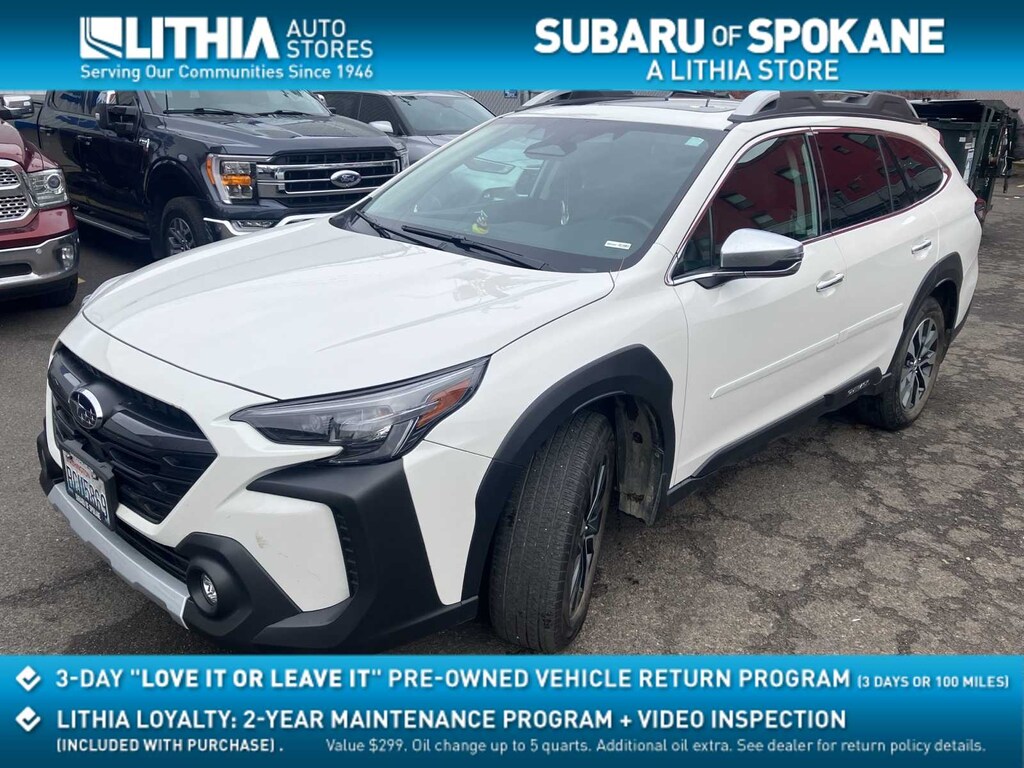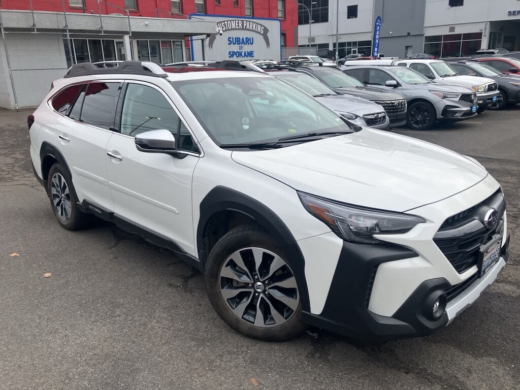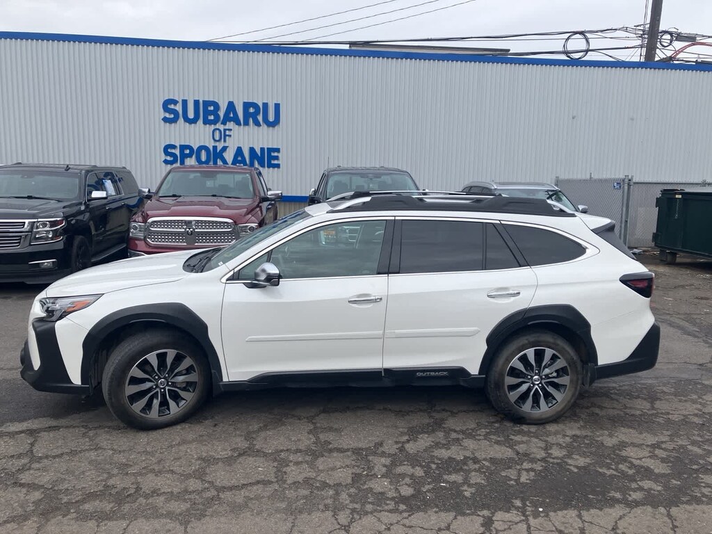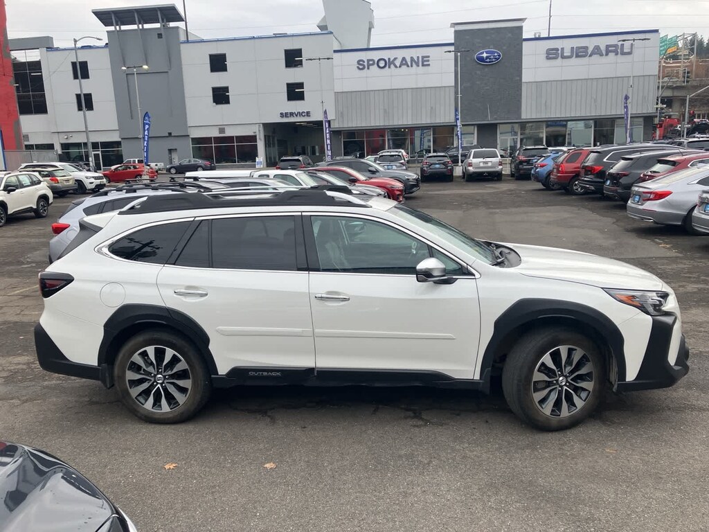 Clean CARFAX. Crystal White Pearl 2024 Subaru Outback Touring AWD CVT Lineartronic 2.5L 4-Cylinder DOHC 16V 12 Speakers, 3.90 Axle Ratio, 4-Wheel Disc Brakes, ABS brakes, Air Conditioning, All-Weather Floor Liners, Alloy wheels, AM/FM radio: SiriusXM, Auto High-beam Headlights, Auto-Dimming Exterior Mirror w/Approach Light, Auto-dimming Rear-View mirror, Automatic temperature control, Brake assist, Bumpers: body-color, Compass, Crystal White Pearl Body Side Molding, Door Projector Light, Driver door bin, Driver vanity mirror, Dual front impact airbags, Dual front side impact airbags, Electronic Stability Control, Emergency communication system: STARLINK Safety Plus (3-year free trial), Exterior Parking Camera Rear, Four wheel independent suspension, Front anti-roll bar, Front Bucket Seats, Front Center Armrest w/Storage, Front dual zone A/C, Front fog lights, Front reading lights, Fully automatic headlights, Garage door transmitter: HomeLink, harman/kardonî Speakers, Heated & Ventilated Front Bucket Seats, Heated door mirrors, Heated front seats, Heated rear seats, Heated steering wheel, HVAC memory, Illuminated entry, Knee airbag, Leather Shift Knob, Leather steering wheel, LED Upgrade, Low tire pressure warning, Memory seat, Navigation system: TomTom Navigation w/what3words, Occupant sensing airbag, Outside temperature display, Overhead airbag, Overhead console, Panic alarm, Passenger door bin, Passenger vanity mirror, Perforated Nappa Leather-Trimmed Upholstery, Popular Package #2, Power door mirrors, Power driver seat, Power Liftgate, Power moonroof, Power passenger seat, Power steering, Power windows, Radio: Subaru STARLINK 11.6 Multimedia Nav System, Rear anti-roll bar, Rear Bumper Cover, Rear Seat Back Protector, Rear seat center armrest, Rear window defroster, Rear window wiper, Remote CD player, Remote keyless entry, Roof rack, Security system, Speed control, Speed-sensing steering, Splash Guards, Split folding rear seat, Spoiler, Standard Model, Steering wheel mounted audio controls, Tachometer, Telescoping steering wheel, Tilt steering wheel, Traction control, Trip computer, Turn signal indicator mirrors, Variably intermittent wipers, Ventilated front seats, Wheels: 18 x 7J Black Aluminum-Alloy, Wireless Charger.