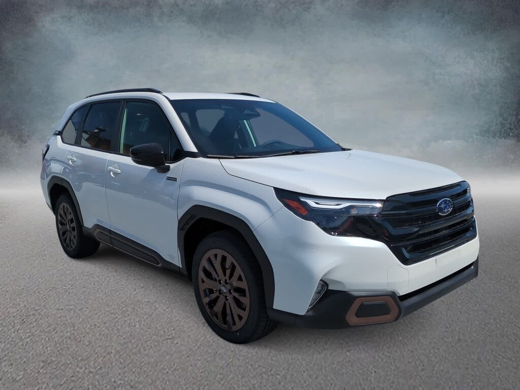 Clean CARFAX. Certified. Crystal White Pearl 2025 Subaru Forester Hybrid Sport Hybrid AWD Lineartronic CVT 2.5L 4-Cylinder DOHC 16V 2.5L 4-Cylinder DOHC 16V, ABS brakes, Active Cruise Control, Alloy wheels, Compass, Electronic Stability Control, Front dual zone A/C, Heated door mirrors, Heated Front Bucket Seats, Heated front seats, Illuminated entry, Low tire pressure warning, Navigation System, Power Liftgate, Remote keyless entry, Traction control.