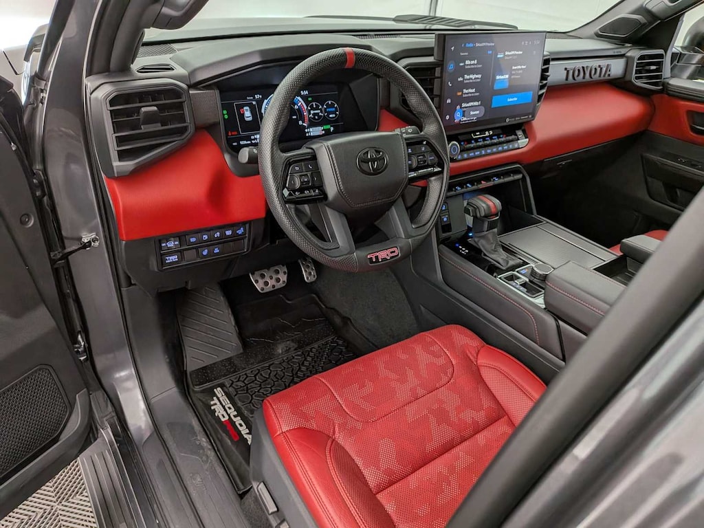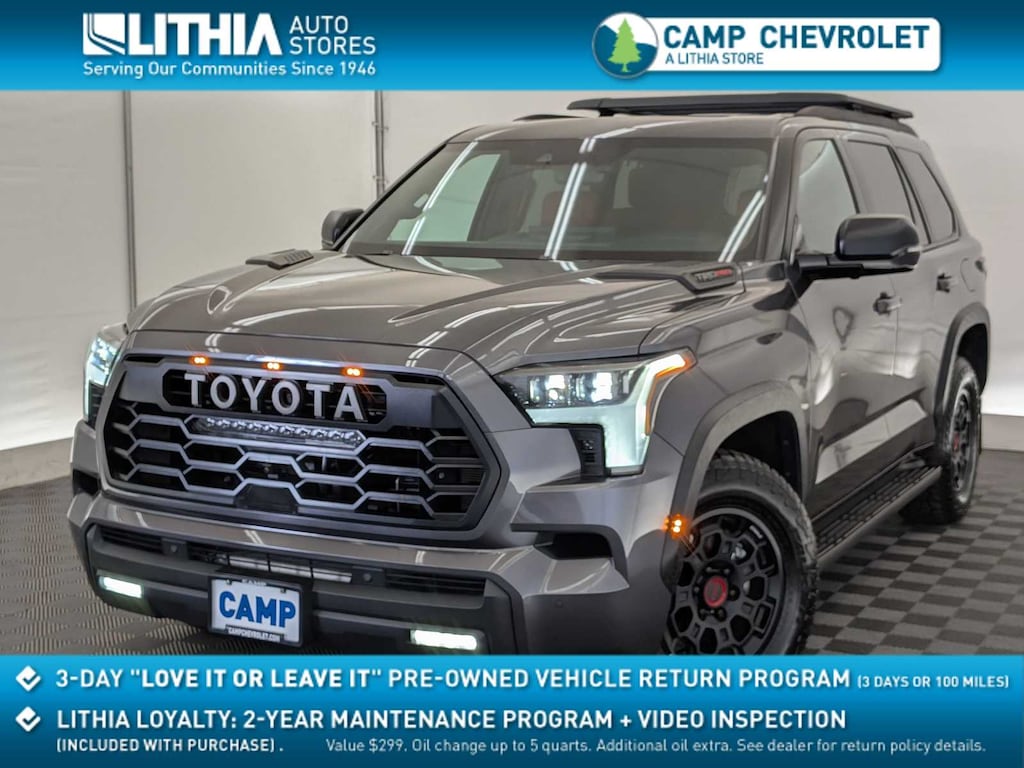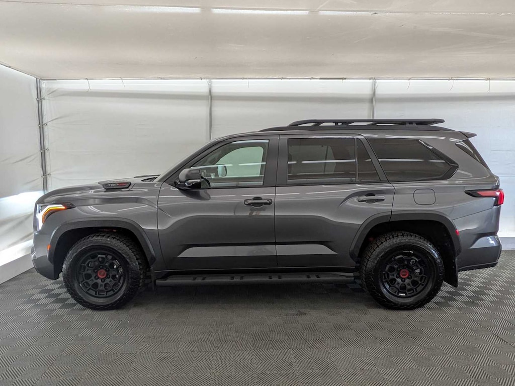 Magnetic Gray Metallic 2024 Toyota Sequoia TRD Pro 4WD 10-Speed Automatic V6 Hybrid ABS brakes, Active Cruise Control, Alloy wheels, Compass, Electronic Stability Control, Front dual zone A/C, Heated & Ventilated Front Seats, Heated door mirrors, Heated front seats, Illuminated entry, Low tire pressure warning, Navigation System, Power moonroof, Remote keyless entry, Traction control.